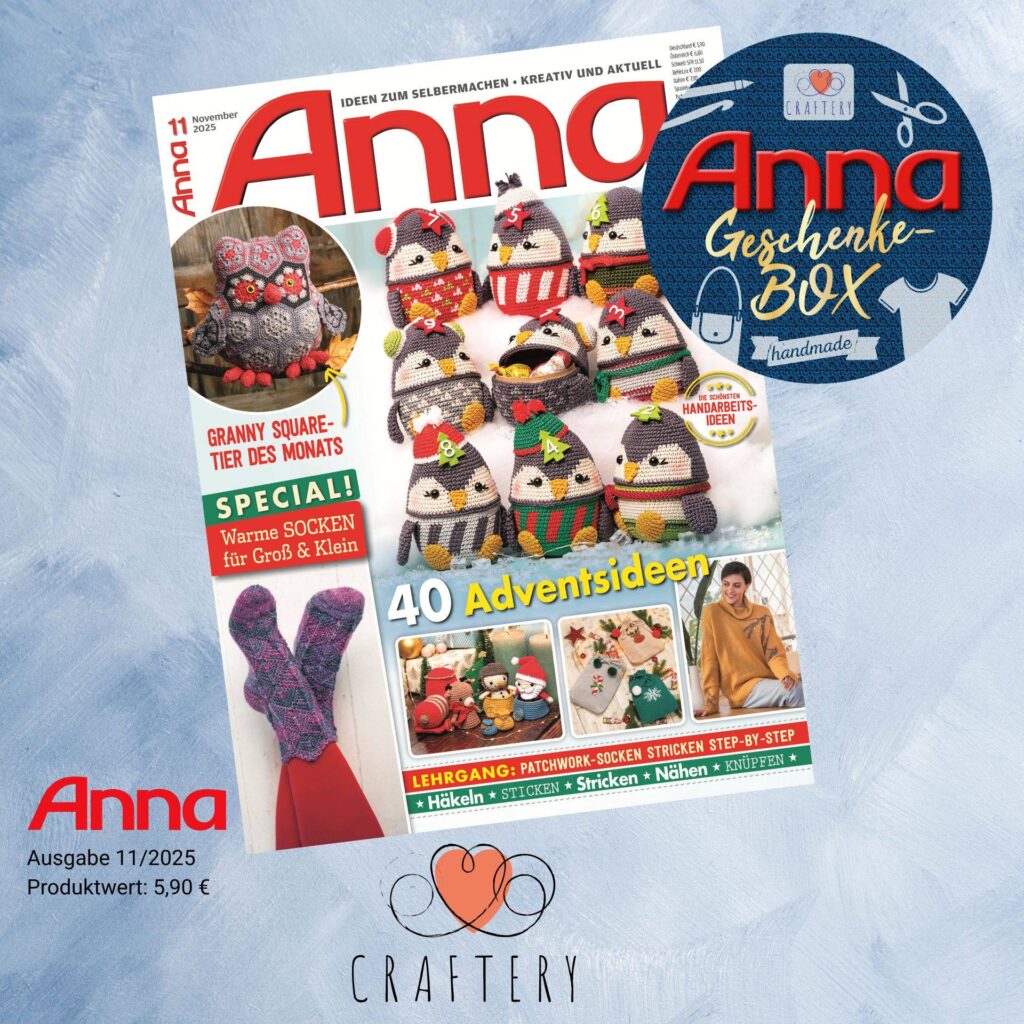 Entdecke die neusten Ausgaben der Anna. Jeden Monat bringen wir dir neue Inspiration für die schönsten saisonalen Dekorationen und tolle Handarbeitsprojekte. Du kannst die Anna Handarbeiten Ausgaben sowohl klassisch als Heft, als auch digital als PDF kaufen. Die digitalen Ausgaben erhältst du sogar vergünstigt!