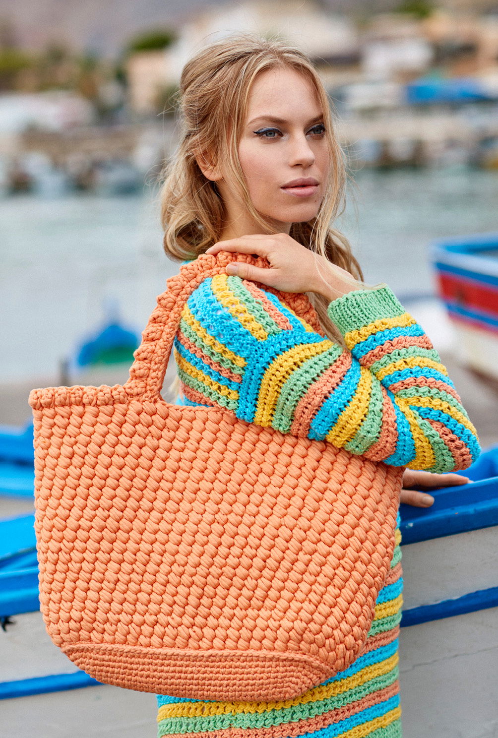 Fabflash: Mit diesem bunten Ringelpulli bringen wir den Frühling auch bei Regen zum Leuchten. Hellgrün, Gelb, Apricot und Azurblau lassen uns strahlen und machen jedes Basic-Outfit zum fröhlichen Hingucker. Gestrickt wird der Baumwollpulli in einzelnen Teilen von unten nach oben. Nach dem Bündchen im Rippenmuster geht es auch gleich los mit den Querrippen. Dieses Muster nicht kompliziert und in der Anleitung ausführlich Reihe für Reihe beschrieben. Dabei bietet die Streifenfolge zusätzlich Abwechslung und jede menge Strickspaß. Sind alle Teile fertig werden noch die Nähte geschlossen und die Blende des V-Ausschnitts gestrickt – wie hierbei eine ganz saubere Spitze gelingt, erklärt die Anleitung Schritt für Schritt. Tipp: Dieser Pulli eignet sich auch ganz prima zur Resteverwertung, so lassen sich die Streifen ohne Problem schmaler oder breiter arbeiten – je nach vorhandenem Garnvorrat kann man auch mit den Streifen einen Farbverlauf kreieren.