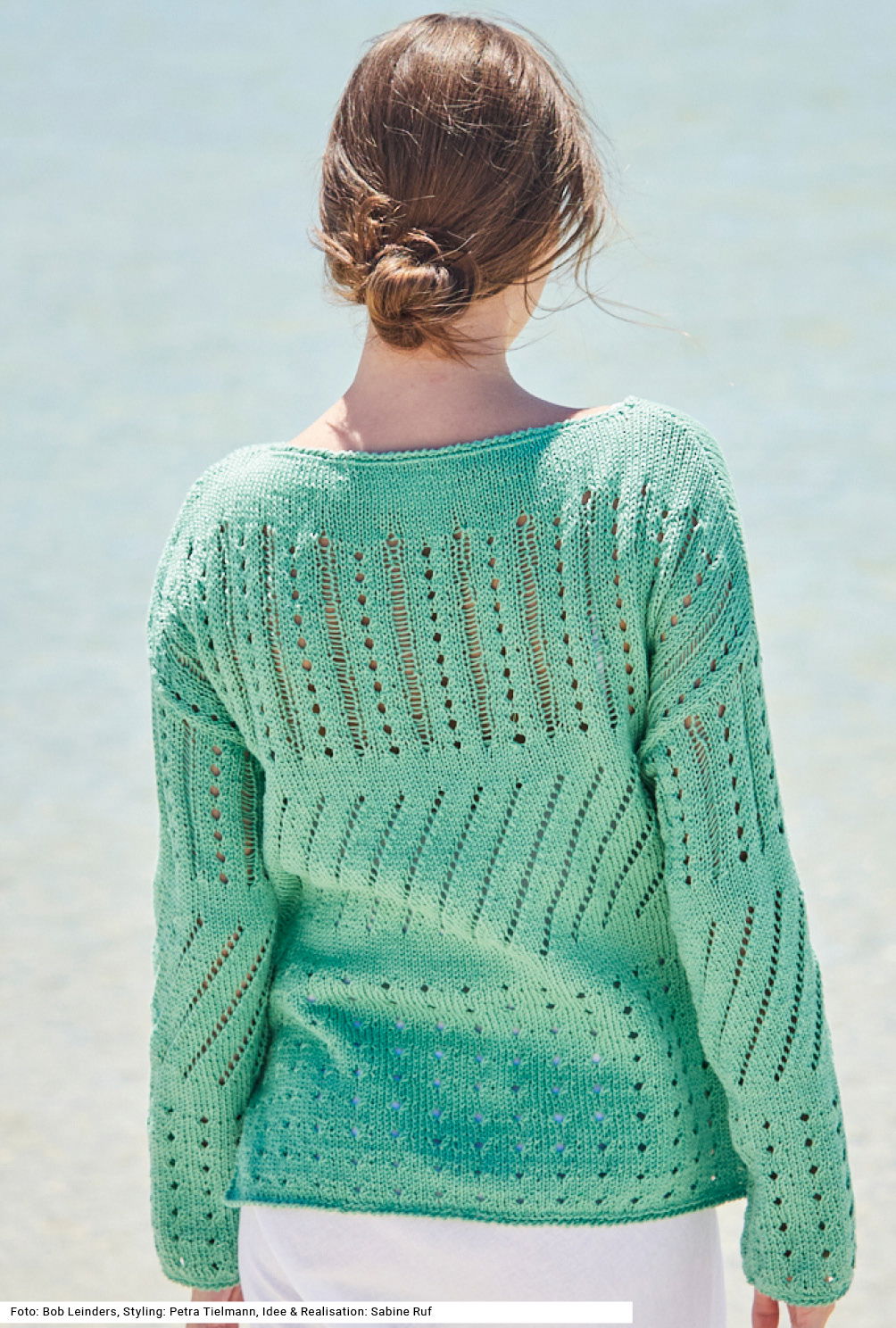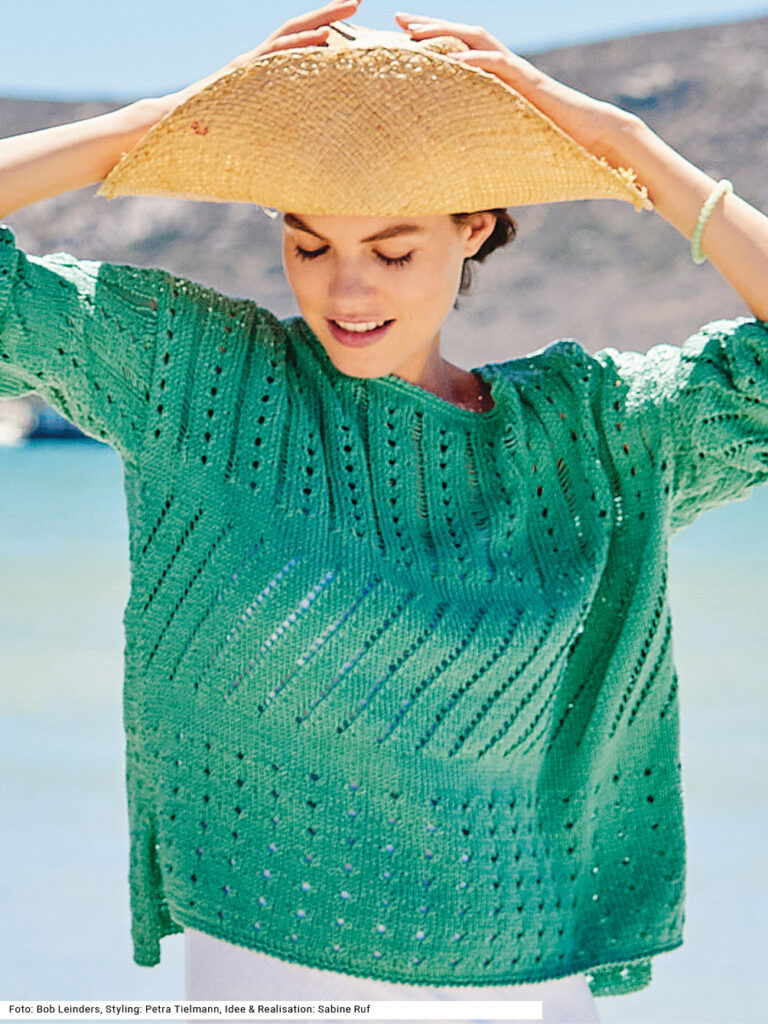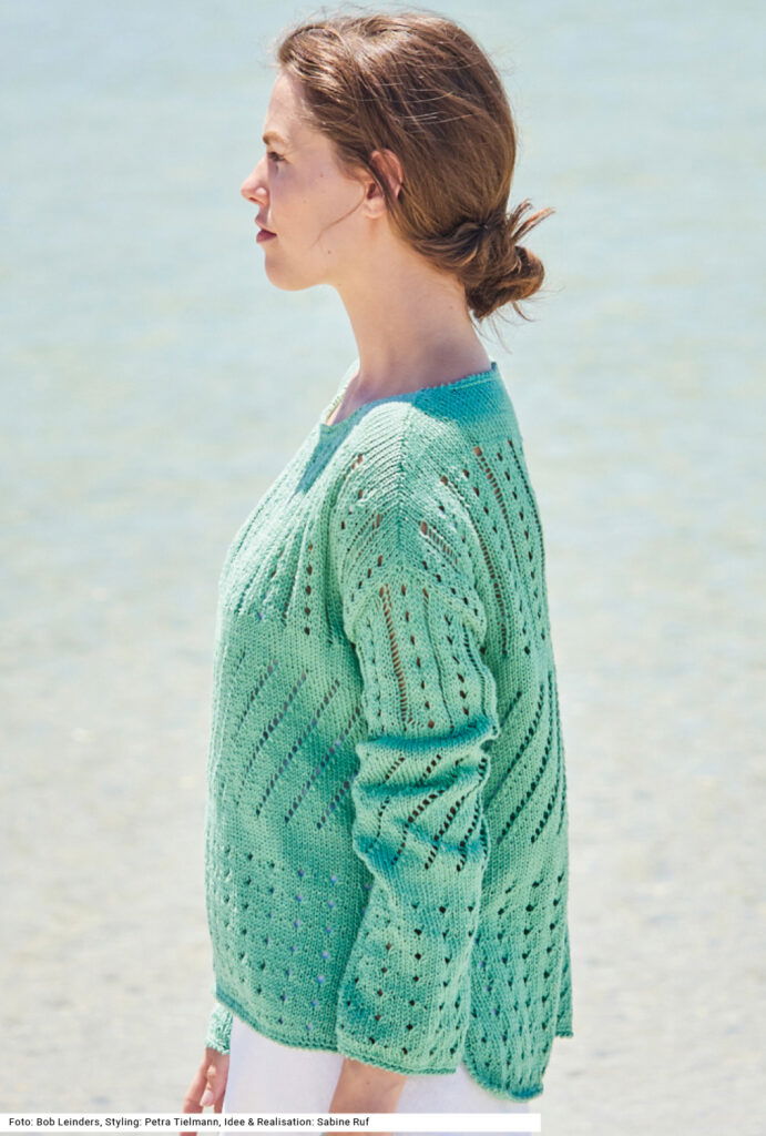 Sabrina Strickjournal Grüner Pulli mit verschiedenen Lochmustern