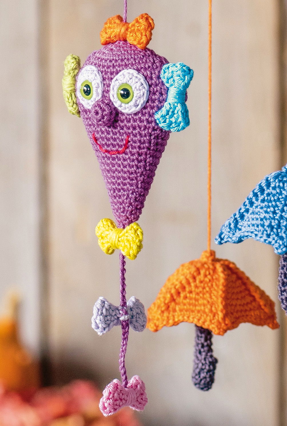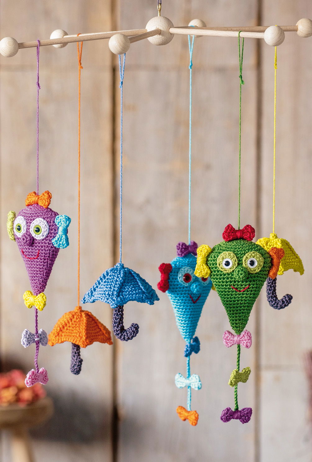 Drachen: ca 63 x 110 cm (mit Drachenschwanz), Mobile: Drachen: je ca 9 x 20 cm, Schirme: je ca 8 cm Ø, 7 cm hoch