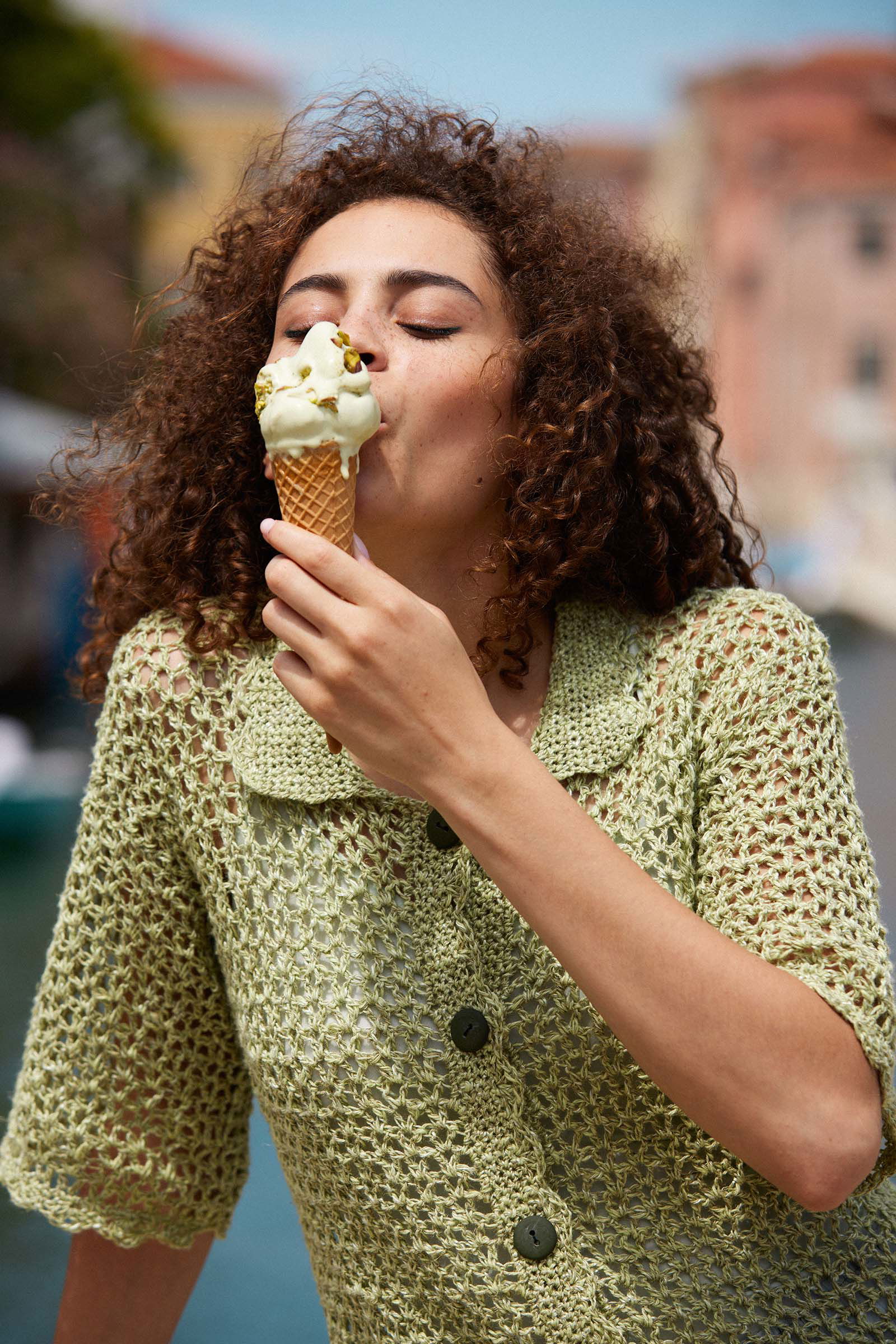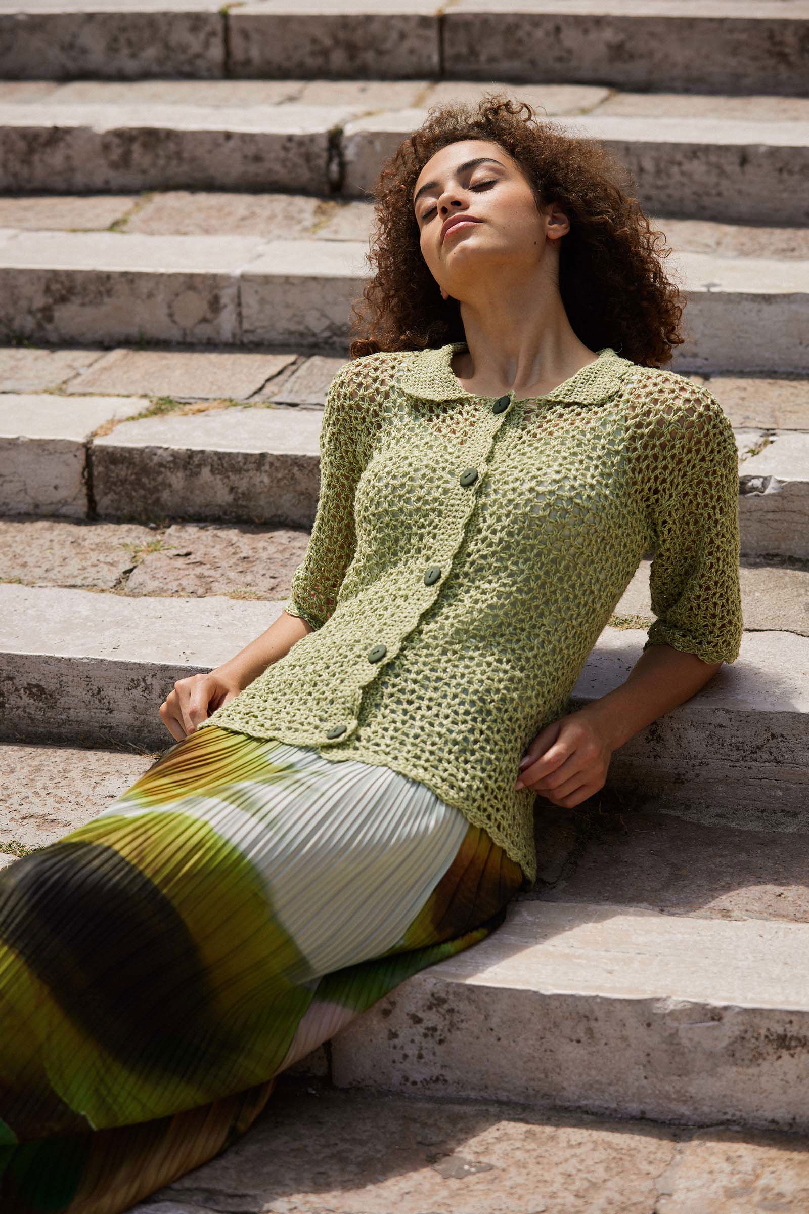 It’s sweet, a little bit vintage, and totally wearable. TIME TO INDULGE pairs openwork crochet with scalloped edges and a preppy collar for a piece that’s equal parts charm and comfort.