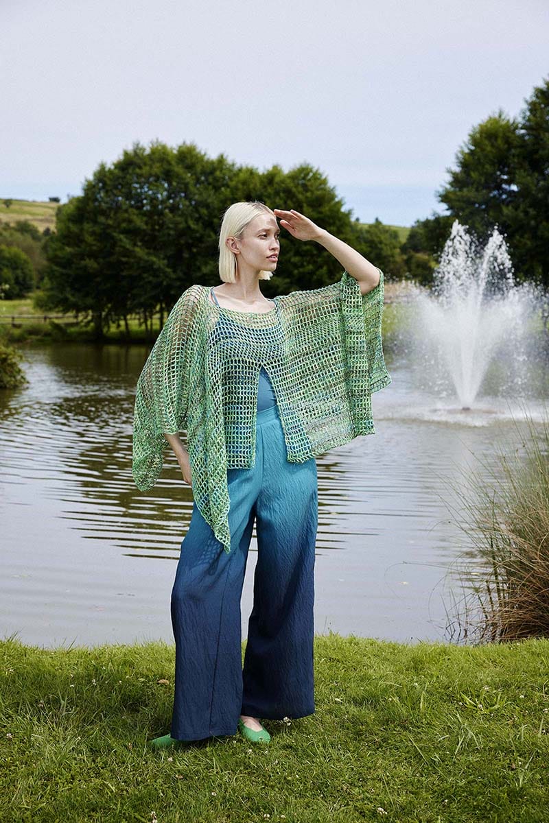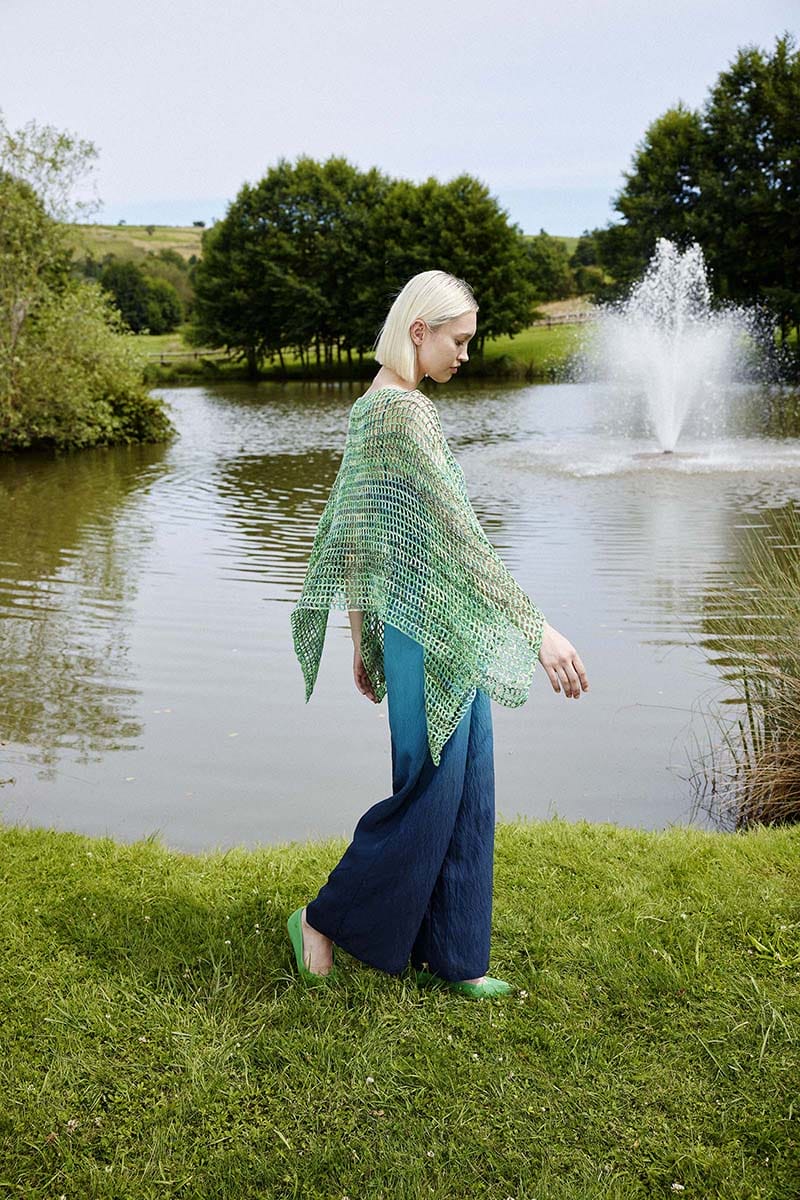 Open crochet stitches and fine yarn make the WIND-KISSED poncho the perfect layering piece for breezy days. With its lightweight design and beautiful drape, a little twirl now and then is an absolute must.