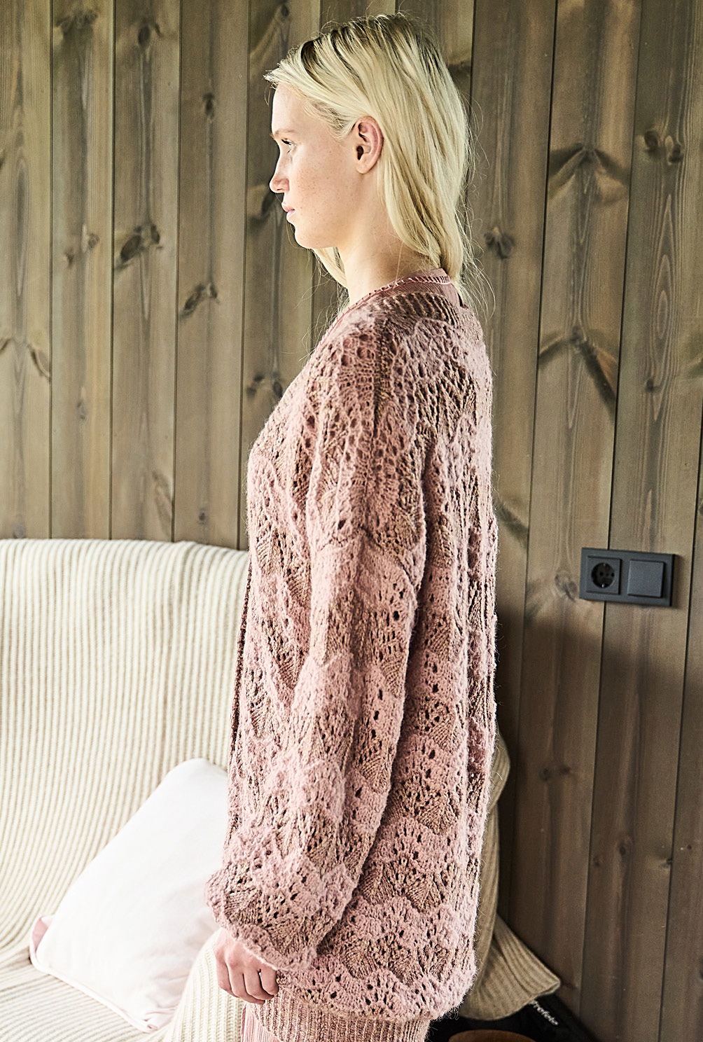 Gönnen Sie sich eine Pause! Mit dieser locker fallenden Strickjacke, deren behaglicher Komfort durch den kuschelweichen Mix aus zwei unterschiedlichen Edelgarnen entsteht. Für das gestreifte Wellenmuster in sanften Rosétönen gibt es eine übersichtliche Strickschrift, durch die du mit etwas Übung ganz schnell vorankommst. Schmale Rippenblenden und farblich passende Knöpfe runden das Bild gekonnt ab. Ein toller Begleiter, der dich bis weit in den Winter begeistern wird.
