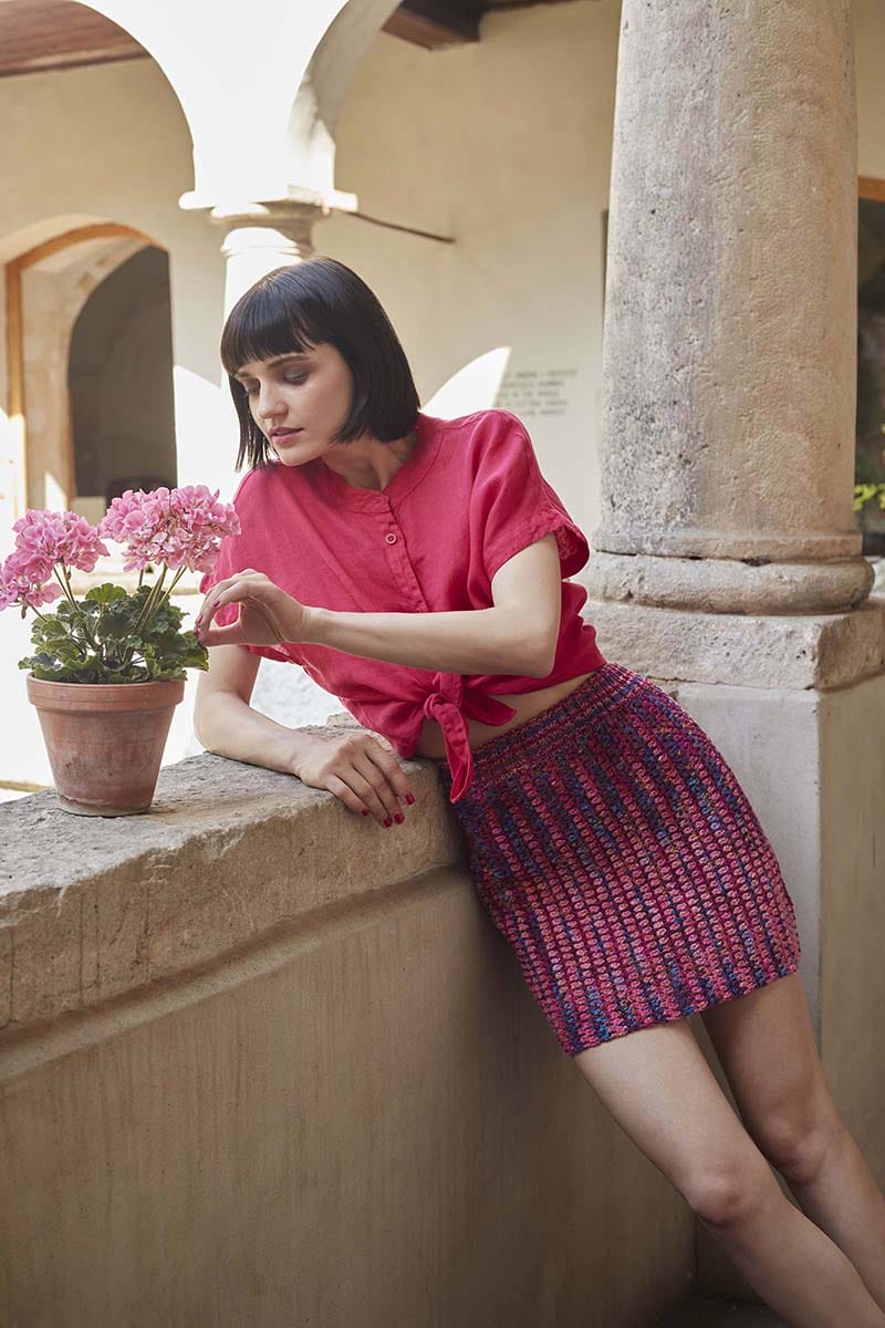 A skirt that is both crocheted and knitted. With a cute granny stripe. Not only the pattern creates a stripe effect, but also the quirky yarn.