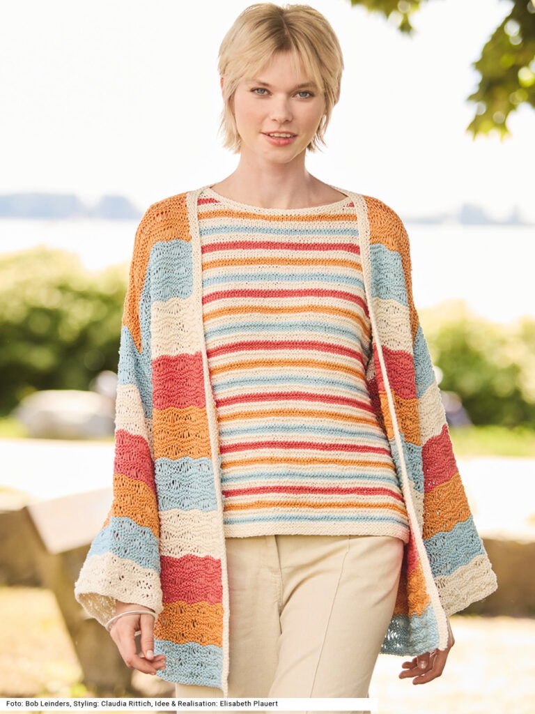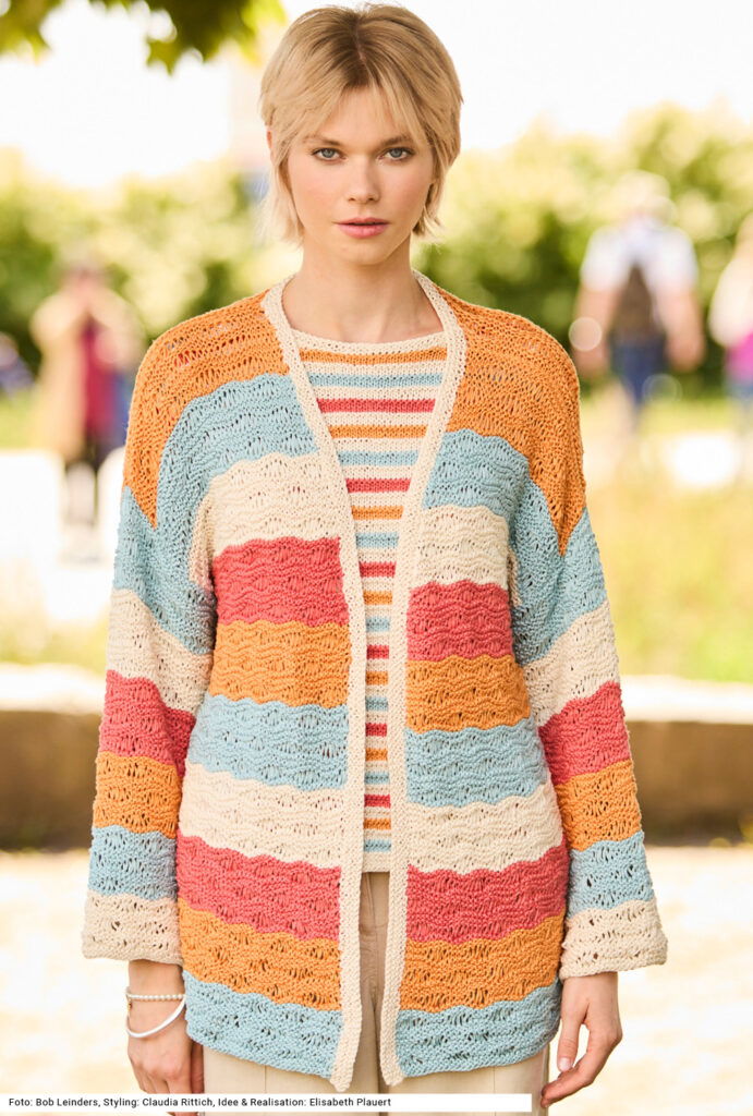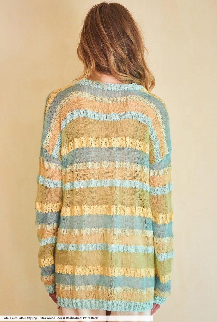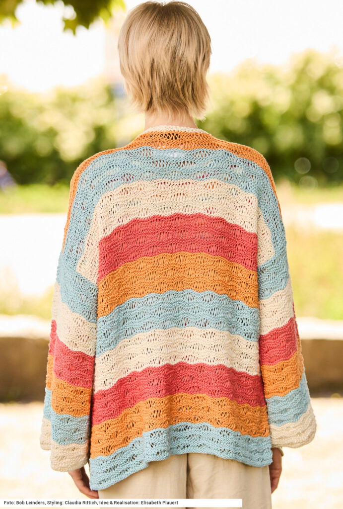 Bei einem Streifenmuster wechselt die Farbe jeweils am Anfang einer Reihe bzw. Runde. Bei jedem Farbwechsel ist es wichtig, dass die Farbübergänge gleichmäßig aussehen.