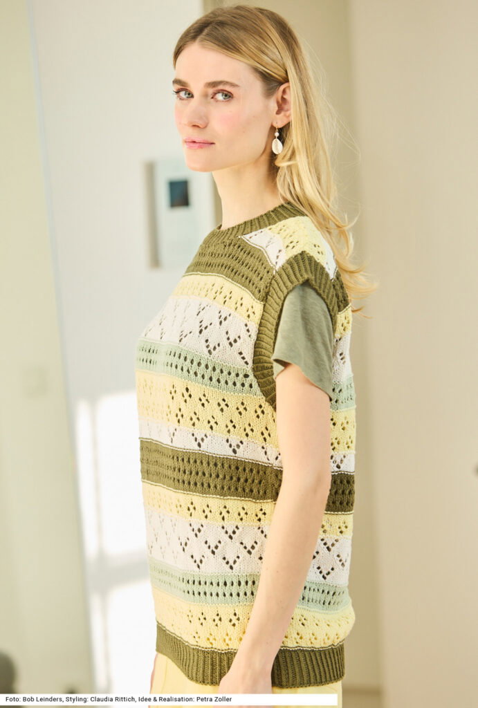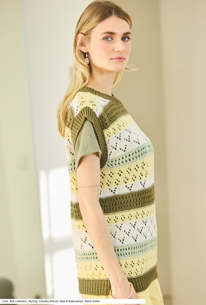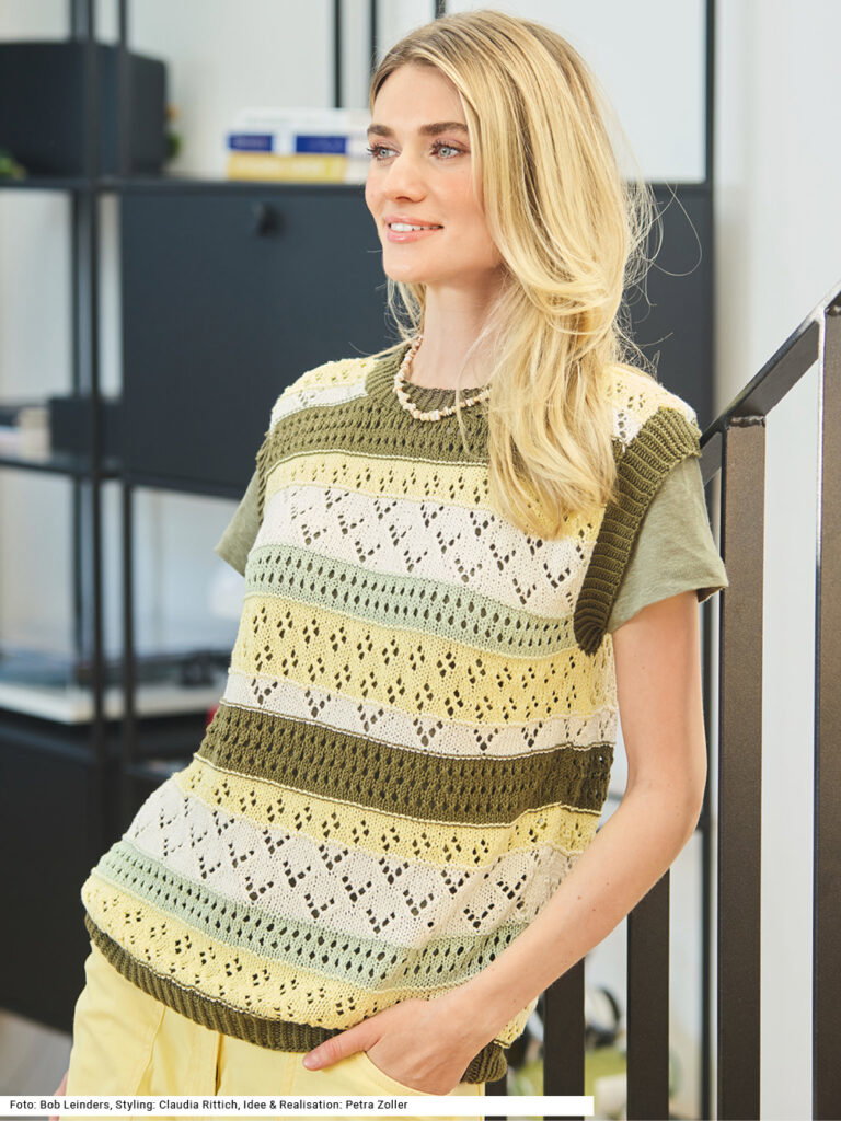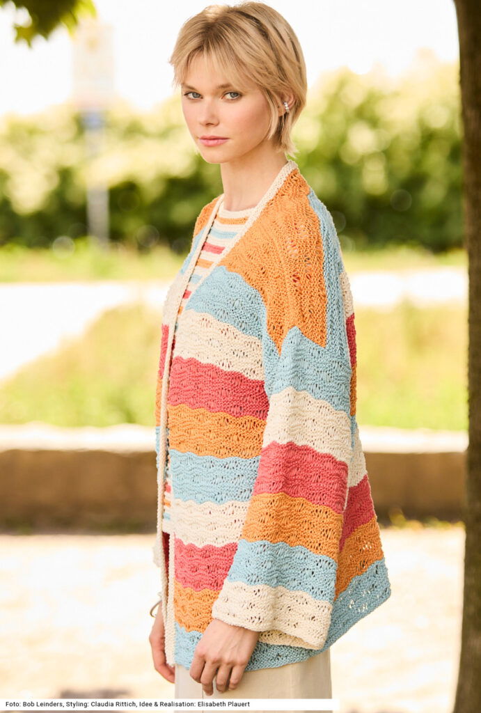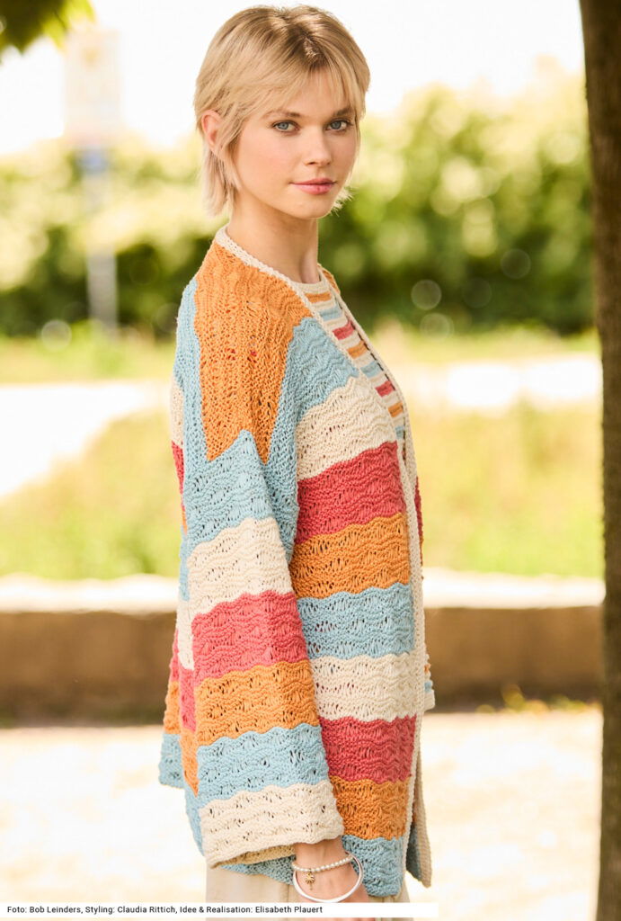 Bei einem Streifenmuster wechselt die Farbe jeweils am Anfang einer Reihe bzw. Runde. Bei jedem Farbwechsel ist es wichtig, dass die Farbübergänge gleichmäßig aussehen.