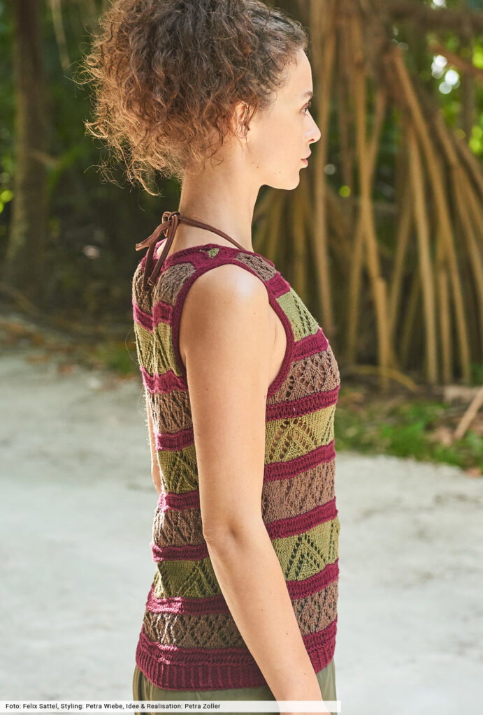 Bei einem Streifenmuster wechselt die Farbe jeweils am Anfang einer Reihe bzw. Runde. Bei jedem Farbwechsel ist es wichtig, dass die Farbübergänge gleichmäßig aussehen.