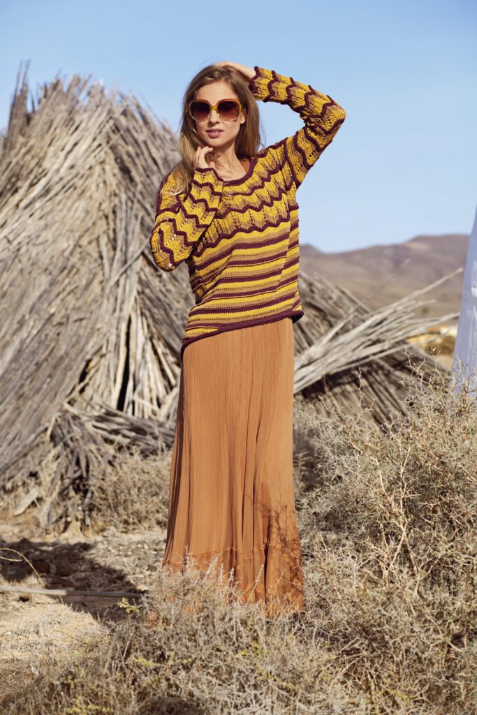 Feine Muster wirken mit dünnen Garnen filigraner, während dickere Garne bei plastischen Mustern wie Noppen oder Zöpfen für mehr Struktur sorgen.