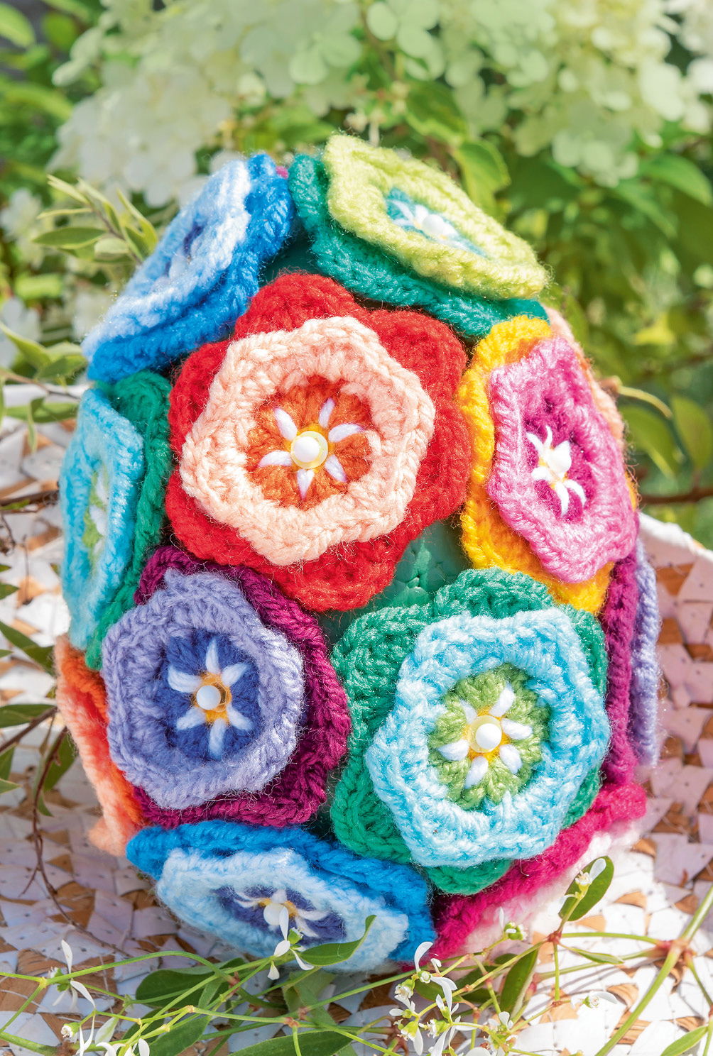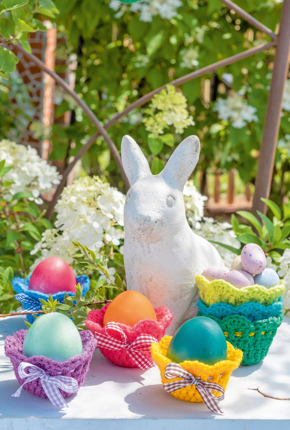 Blumenwiese: ca 36 cm Ø; 1 Blüte ca 6,5 cm Ø; Ostereier: ca 6 cm hoch; Blumen-Ei: ca 14 cm hoch; 1 Blüte ca 5,5 cm Ø; Eierbecher: ca 5 cm hoch, 7 cm Ø