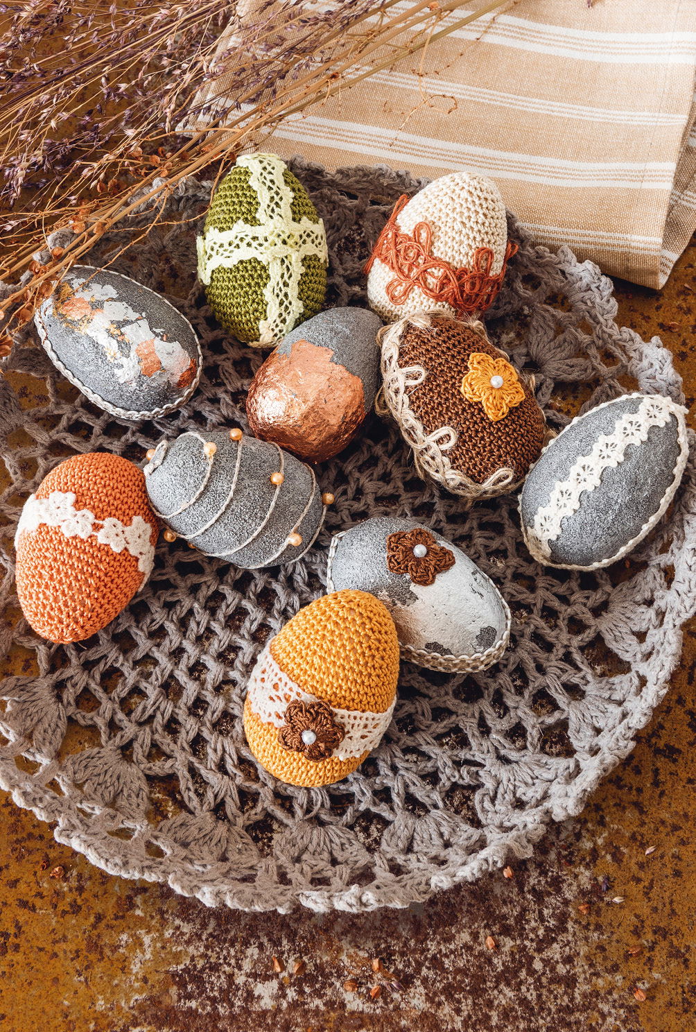 Material für 5 umhäkelte Eier: