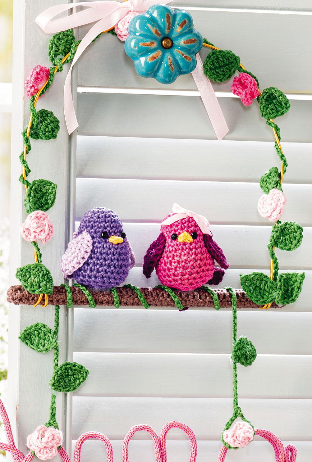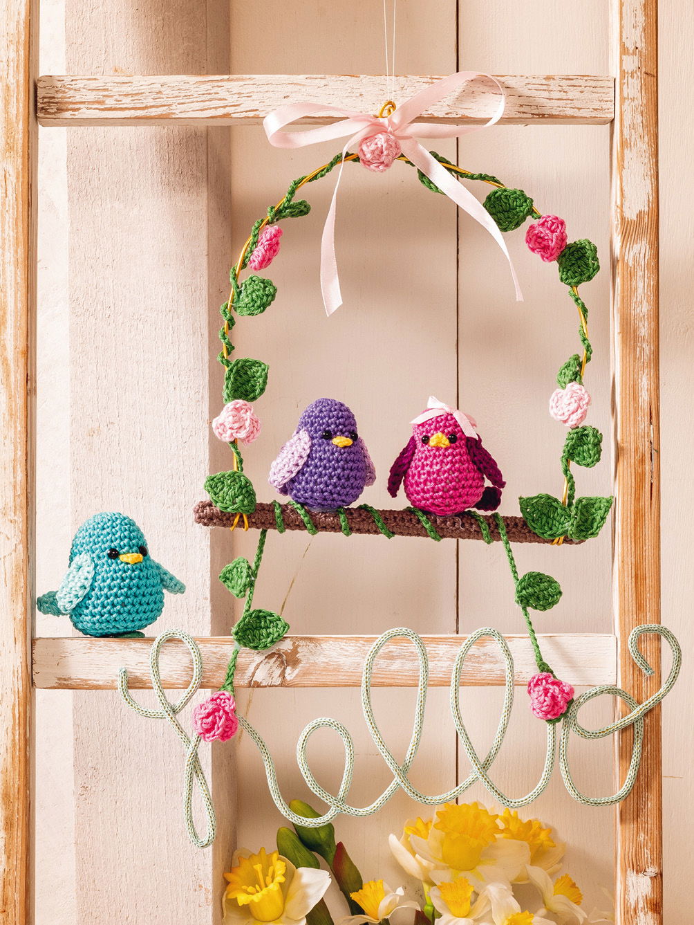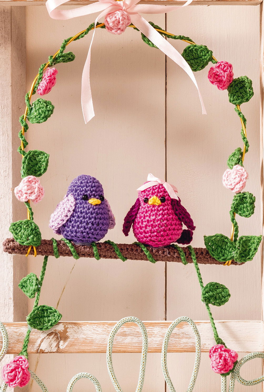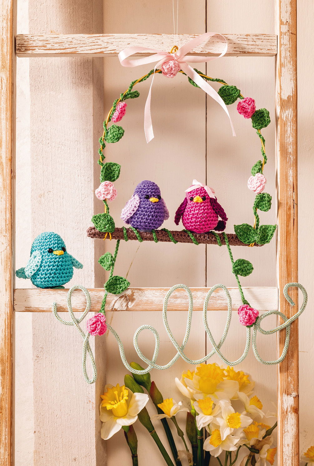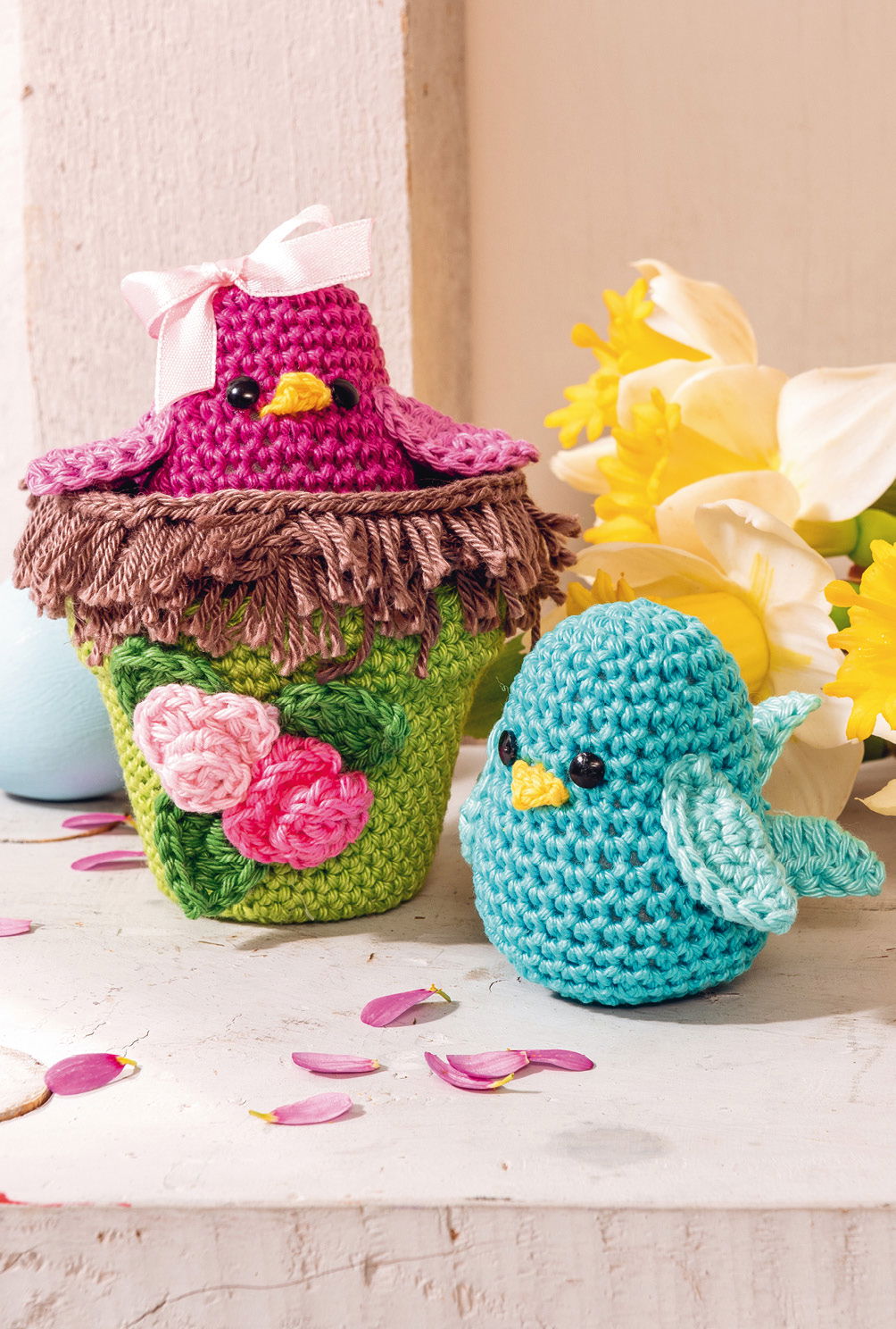 Blumentopf: ca 8 cm hoch; Vögel: ca 7 x 6 cm; Vögel im Sitzgestell: ca 21 x 25 cm