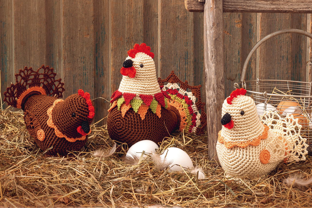 Hahn: ca 19 cm hoch; Hennen: je ca 14-15 cm hoch