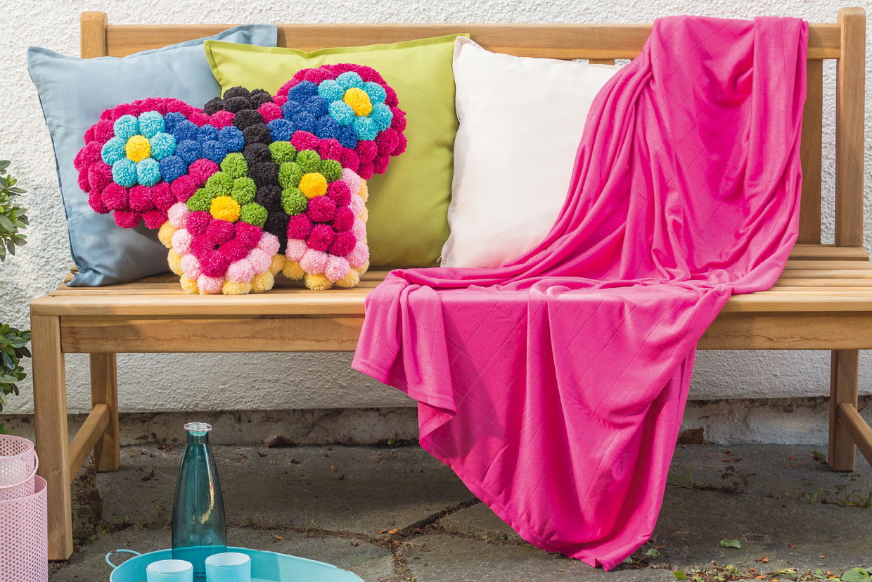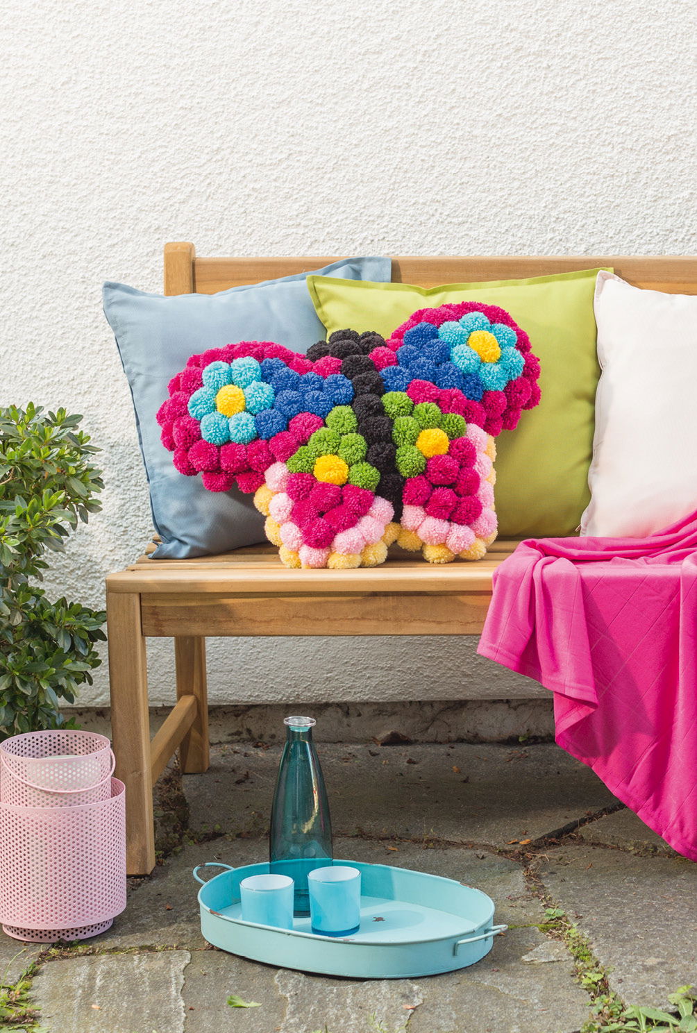 Anna Handarbeiten Schmetterlingskissen aus kunterbunten Pompons