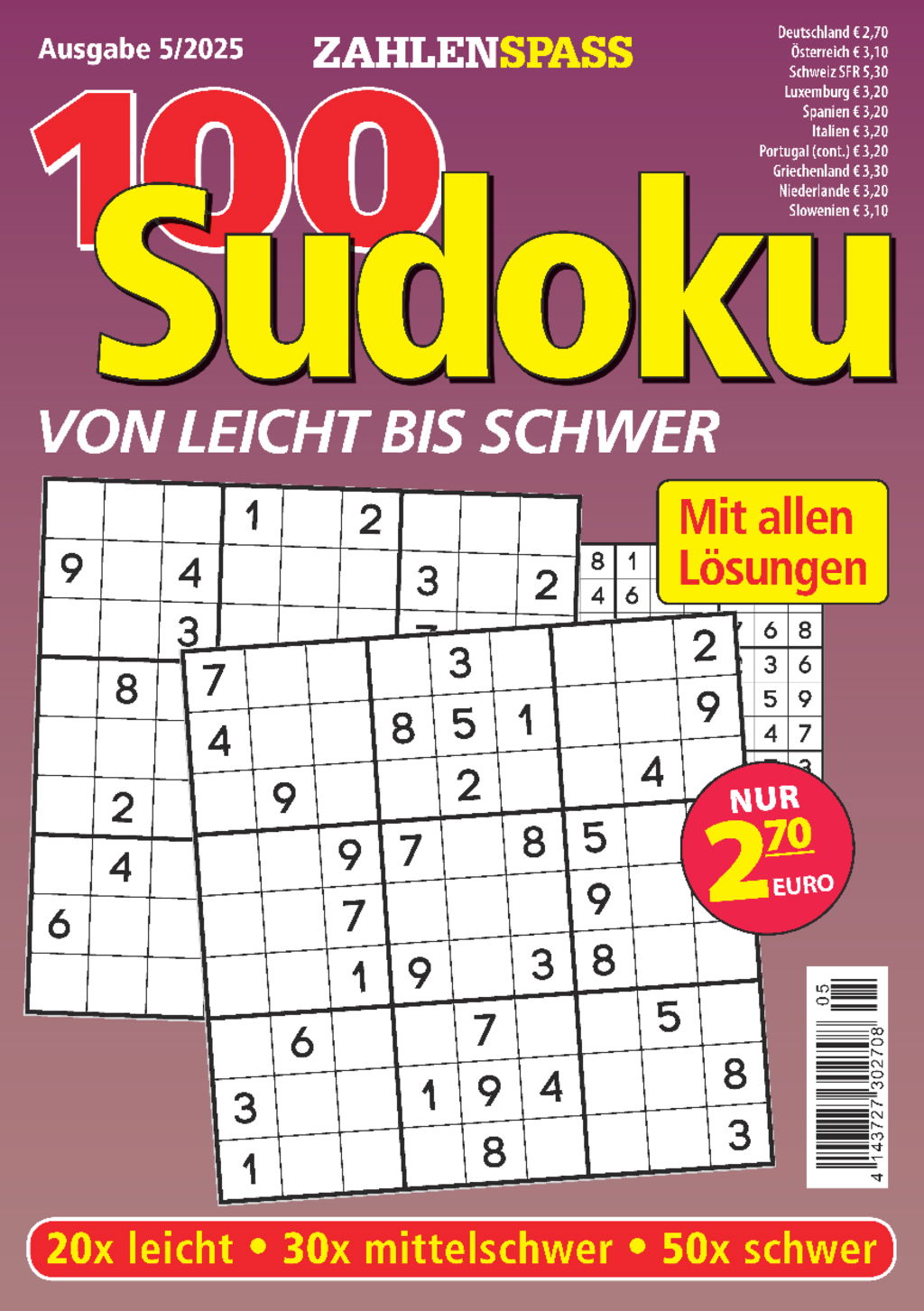 100 Sudoku von leicht bis schwer - 5/2025