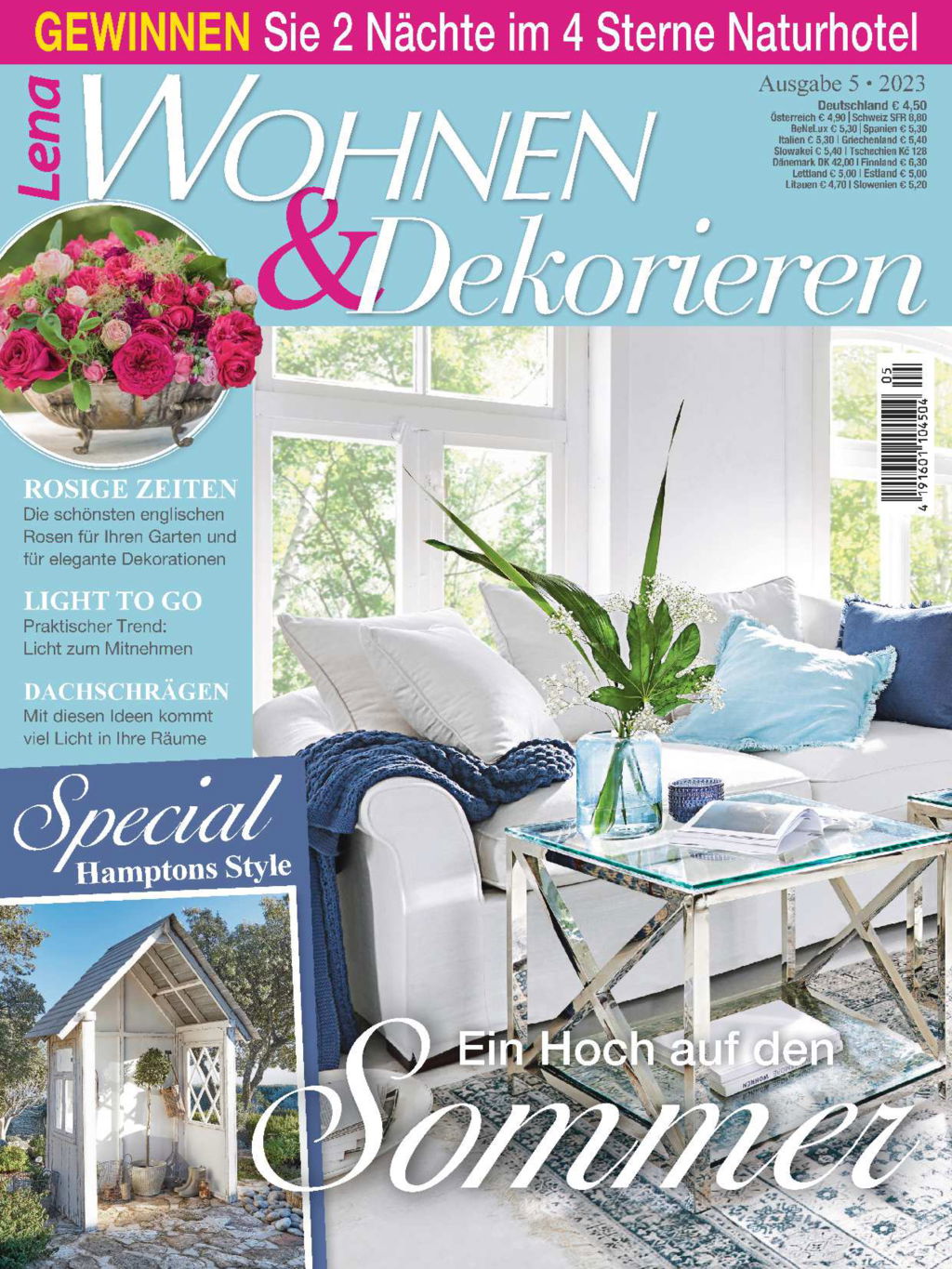 Willkommen in dieser Ausgabe von Lena Wohnen und Dekorieren. Wir verführen dich mit unserem Special in die Hamptons und holen das elegante Strandhausgefühl direkt zu dir nach Hause. Und wenn wir schon bei langen Sommernächten sind, Lights to go sind die Innovation für lange Nächte mit schöner Beleuchtung. ganz egal wo. Und damit auch die Dekoration perfekt ist, stellen wir dir die schönsten Rosen vor. Außerdem besuchen wir Anschyla von @my_shabby_farmhaus und fragen die Einrichtungsberaterin nach ihren Tipps. Wir reisen mit dir in den Bregenzerwald, kochen mit leckeren Küchenkräutern und sorgen für Licht und Stauraum unter dem Dach. Bezaubernde DIY-Ideen kommen auch nicht zu kurz. Süße Dekostücke mit Urlaubsfeeling, Platzsets, die Freude am Tisch bringen und Vasen sind schnell gezaubert und werden deine Gäste begeistern. Unser Thema Nachhaltigkeit gibt dir viele Tipps, um dich umweltfreundlich einzurichten. Und es gibt wieder ein großartiges Gewinnspiel. Reise mit uns ins Salzburgerland. Es gibt viel zu entdecken. Schau einfach mal rein und lasse dich inspirieren!