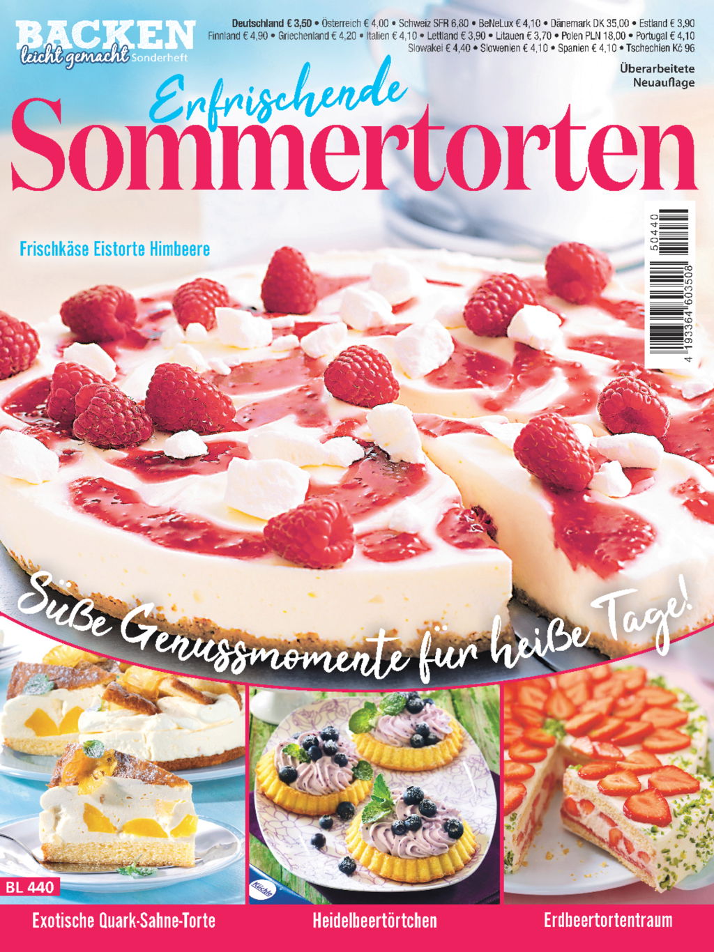Sommer, Sonne und Kühlschrank-Torten. Das könnte das Motto dieser Zeitschrift sein. Wir haben für Sie wieder eine inspirierende Auswahl von 28 tollen Tortenrezepten zusammengestellt. Das Besondere: Viele der Kreationen sind ohne Backen, d. h. die Hitze des Sommers wird nicht noch zusätzlich durchs Backen in der Küche in die Höhe getrieben. Ein knuspriger Keksboden bildet die Grundlage dieser Torten. Seine Herstellung ist simpel: Kekse sehr fein zerbröseln, geschmolzene Butter dazugeben und eine teigartige Masse entstehen lassen, auf den Boden einer mit Backpapier ausgelegten Springform geben, kaltstellen. Danach wird die Creme aus (Frucht-) Joghurt, Sahne, Quark oder Frischkäse hergestellt und gleichmäßig darüber verteilt. Das Ganze in den Kühlschrank – am besten über Nacht – fertig! Unsere raffinierten Sommertorten werden Sie in der heißen Jahreszeit, wenn das Thermometer in die Höhe klettert, nicht zuletzt durch ihren hohen Fruchtanteil, erfrischen. Dazu kommt der Genuss ohne Reue, bei so viel locker-leichten Zutaten. Lassen Sie sich verzaubern von der Vielfalt und dem Ideenreichtum dieser Ausgabe und vor allem vom reinen Tortengenuss.