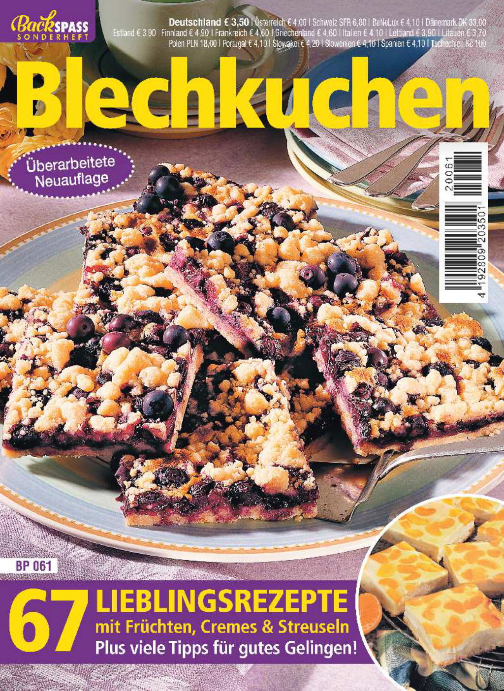 Eine Zeitschrift im praktischen Handtaschenformat voll mit köstlichen Blechkuchenrezepten: 67 Ideen von cremig bis fruchtig. Klassiker mit Kirschen, Beeren und Zwetschgen sowie feine Butter-, Nuss und Streuselkuchen. Besondere Geschmackserlebnisse bringen Milchreis-Teig, Orangensaft-Creme oder Mokka-Glasur, leichter Karibikflair wird mit Rum & Kokos eingerührt. Einige pikante Rezepte runden die Vielfalt ab. Für gutes Gelingen sind in dieser Ausgabe viele Tipps und Tricks zum Backen zu finden.