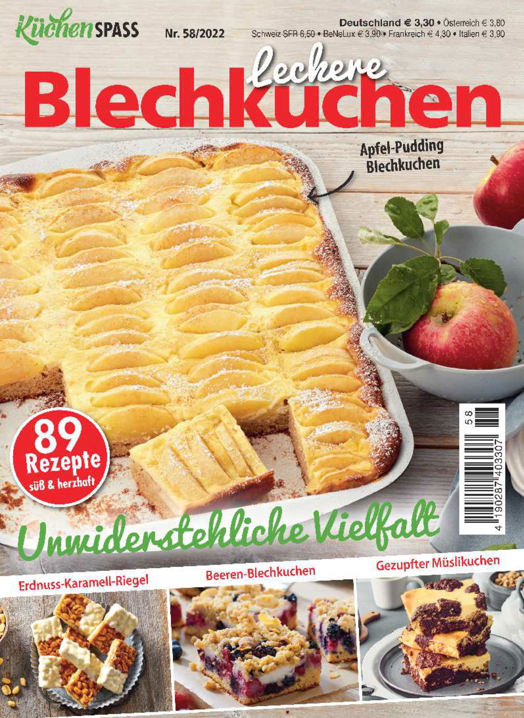 In der Zeitschrift KüchenSPASS – Blechkuchen, natürlich im praktischen Pocketformat, finden Schleckermäuler 89 klassische, interessante und einfach köstliche Rezepte zum Genießen!