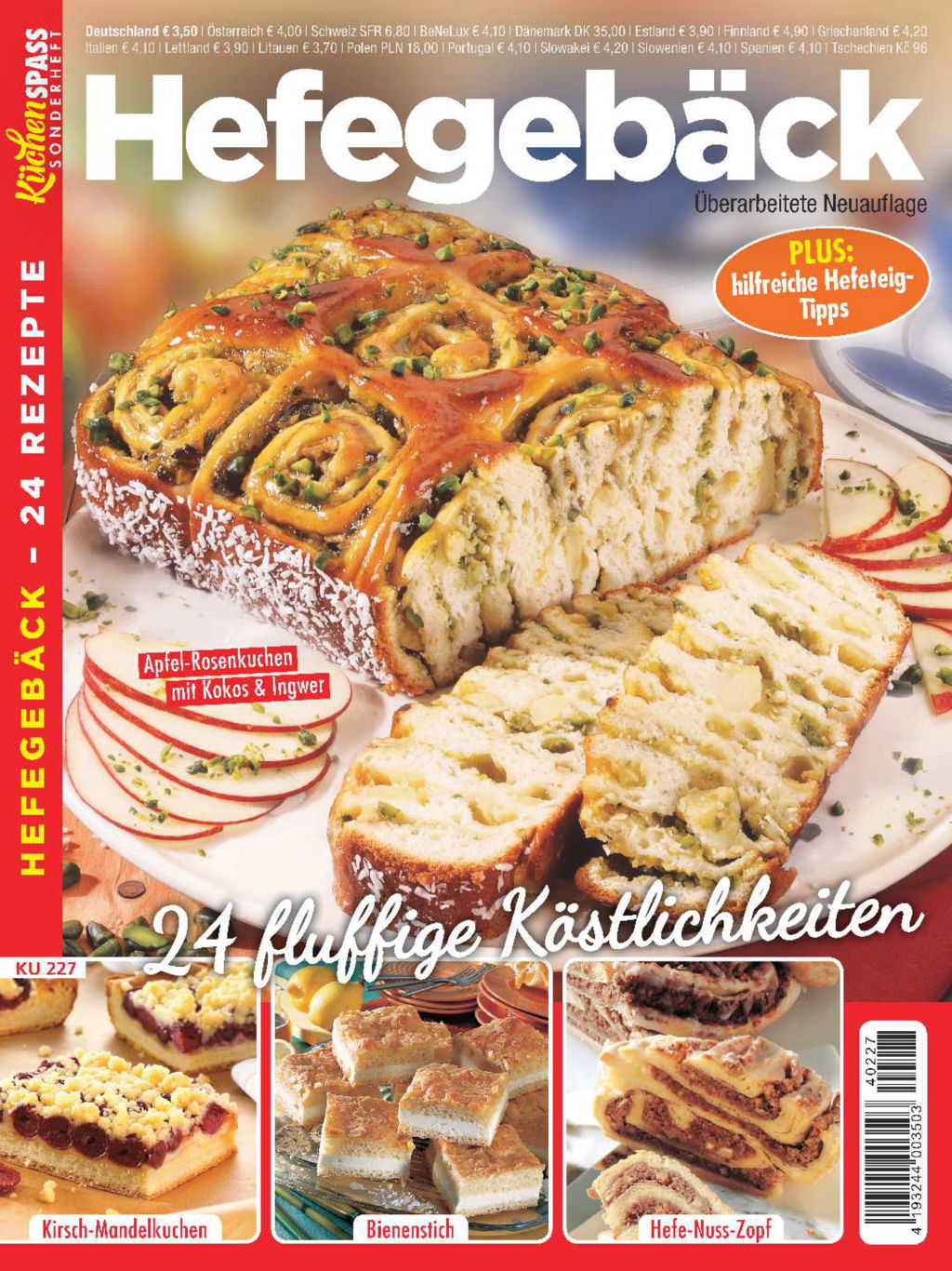 Locker und leichtes Hefegebäck – das Beste für Genießer! Hefe als Backtriebmittel verleiht dem Teig eine besonders lockere Beschaffenheit und ein ganz typisches Aroma. Ob als kleine Teilchen, Zöpfe, Blechkuchen, Gugelhupf oder aus der runden Springform, ist Hefekuchen auf den ersten Blick ein Augenschmaus. Für Nüsse, saftiges Obst, Sahne, Mohn, Streusel oder Mandeln bietet er als Teig die besonders aromatische Grundlage. In unserer leckeren Auswahl haben wir für dich vielfältige, süße Rezepte zusammengestellt, und einige herzhafte Varianten runden das Angebot ab. Vom Hefeteigklassiker bis hin zur exotischen Rezeptidee – in dieser aktuellen Ausgabe findet garantiert jeder Geschmack das passende Lieblingsrezept!