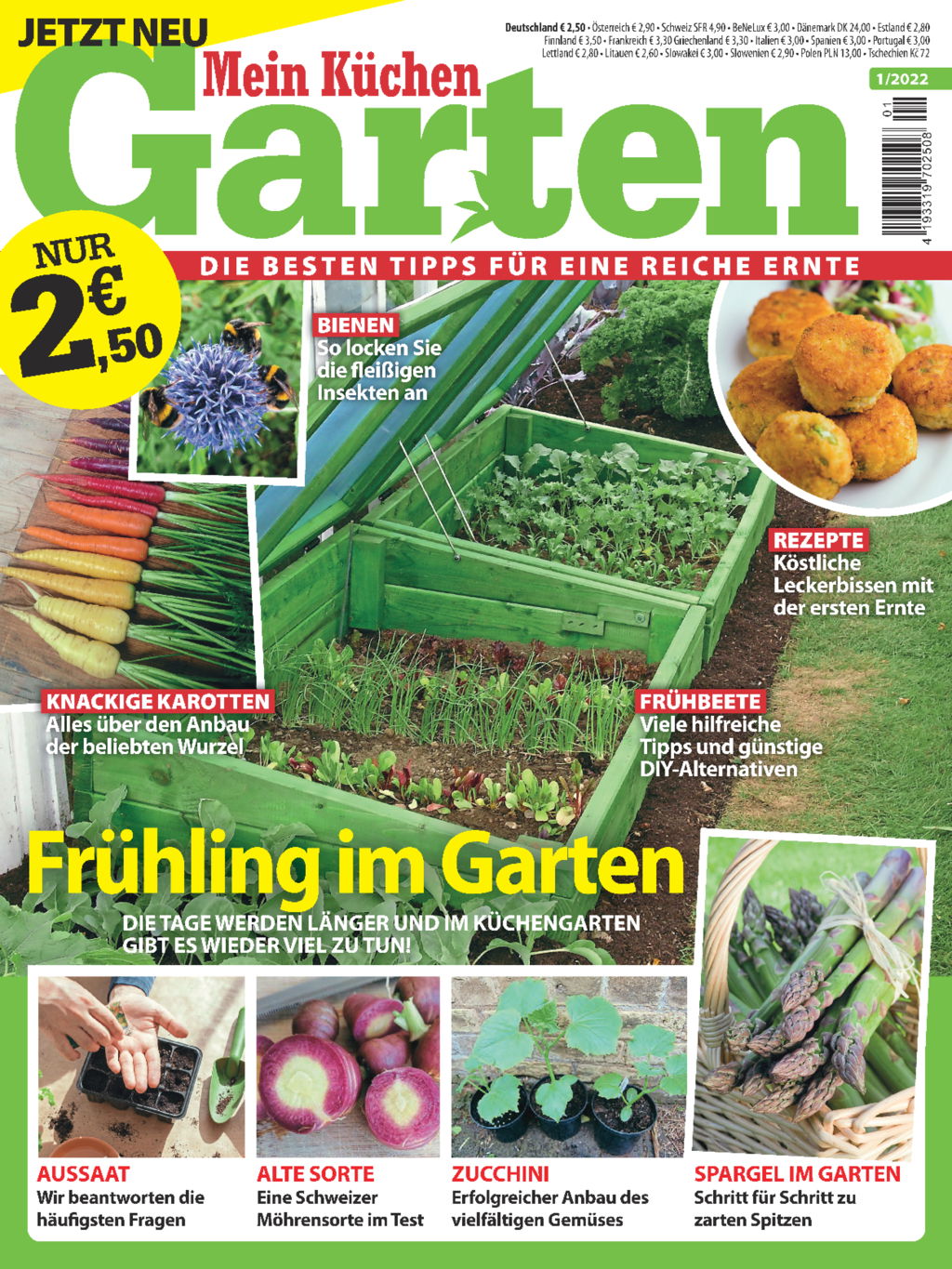 Für die Natur ist der Startschuss gefallen. Überall sprießt es jetzt unaufhaltsam. Endlich ist es an der Zeit für die erste Aussaat der Samen im Zimmergewächshaus, Treibhaus oder Folientunnel. In dieser Ausgabe von Mein Küchengarten findest du viele Ideen für ein eigenes Treibhaus und zwar für jedes Budget. Im Gemüsegarten richten wir unser Augenmerk auf die allseits geliebte und pflegeleichte Karotte, den viel Geduld erfordernden Spargel und den anspruchsvollen Blumenkohl. Für alle, die in diesem Jahr ihren Garten erweitern wollen, haben wir wertvolle Tipps zum Bau eines eigenen Frühbeets und zu drei modernen Techniken der Beetanlage zusammengestellt. Mit einer Wildblumenwiese oder einem Bienenhotel in der Gartenecke tust du Bienen und Hummeln einen großen Gefallen. Und natürlich erwarten dich wieder leckere Rezepte mit Zutaten, die du jetzt im Garten ernten kannst. Diese und viele weitere wichtige Tipps für einen perfekten Küchengarten findest du hier!