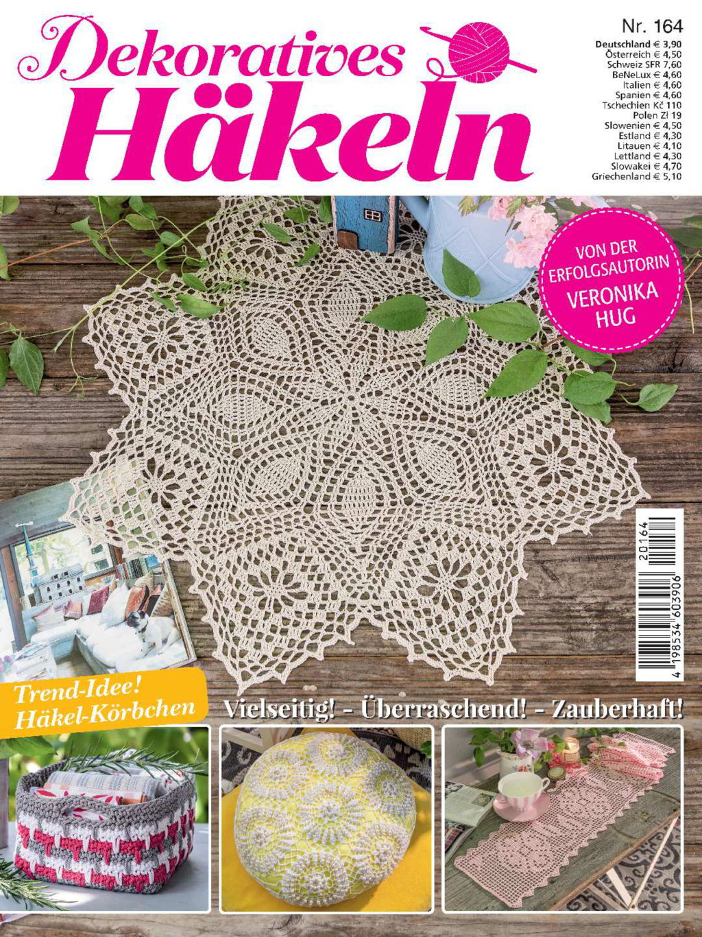 Bist du auf der Suche nach einem hübschen Accessoire für dein Zuhause? Dann bist du hier genau richtig. Die Erfolgsautorin Veronika Hug hat in dieser Ausgabe von Dekoratives Häkeln wieder einmal eine wunderschöne und abwechslungsreiche Auswahl zusammengestellt. Die fängt bei den dekorativen Deckchen mit ihren beeindruckenden Mustern an und geht über zu den zierlichen Gardinchen, die jedem Fenster einen besonderen Flair aufhauchen. Nicht zu überachten sind auch die bezaubernden Kissenhüllen, die noch kunstvoll mit Perlen verziert werden. Und wer gerne mal ein paar schöne Farbtupfer auf seinem Tisch präsentieren möchte, der greift zur Häkelnadel und der ROPE und zaubert daraus nette Körbchen, die nicht nur äußerst hübsch, sondern auch ungemein praktisch sind.
