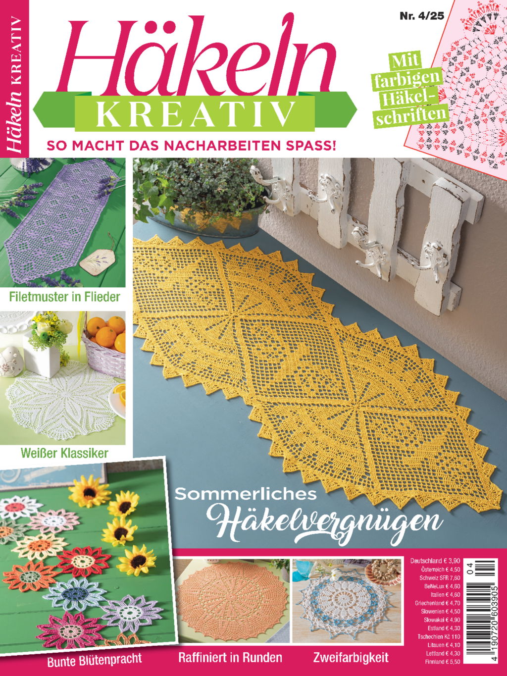 Diese Ausgabe von Häkeln kreativ steht ganz im Zeichen sonniger Leichtigkeit und fröhlicher Farben. Wir haben für dich 17 bezaubernde Häkelideen zusammengestellt: von luftigen Deckchen über dekorative Tischläufer bis hin zu kleinen Accessoires für drinnen und draußen. Ob zarte Pastelltöne oder kräftige Sommerfarben: Für jeden Geschmack ist etwas dabei.