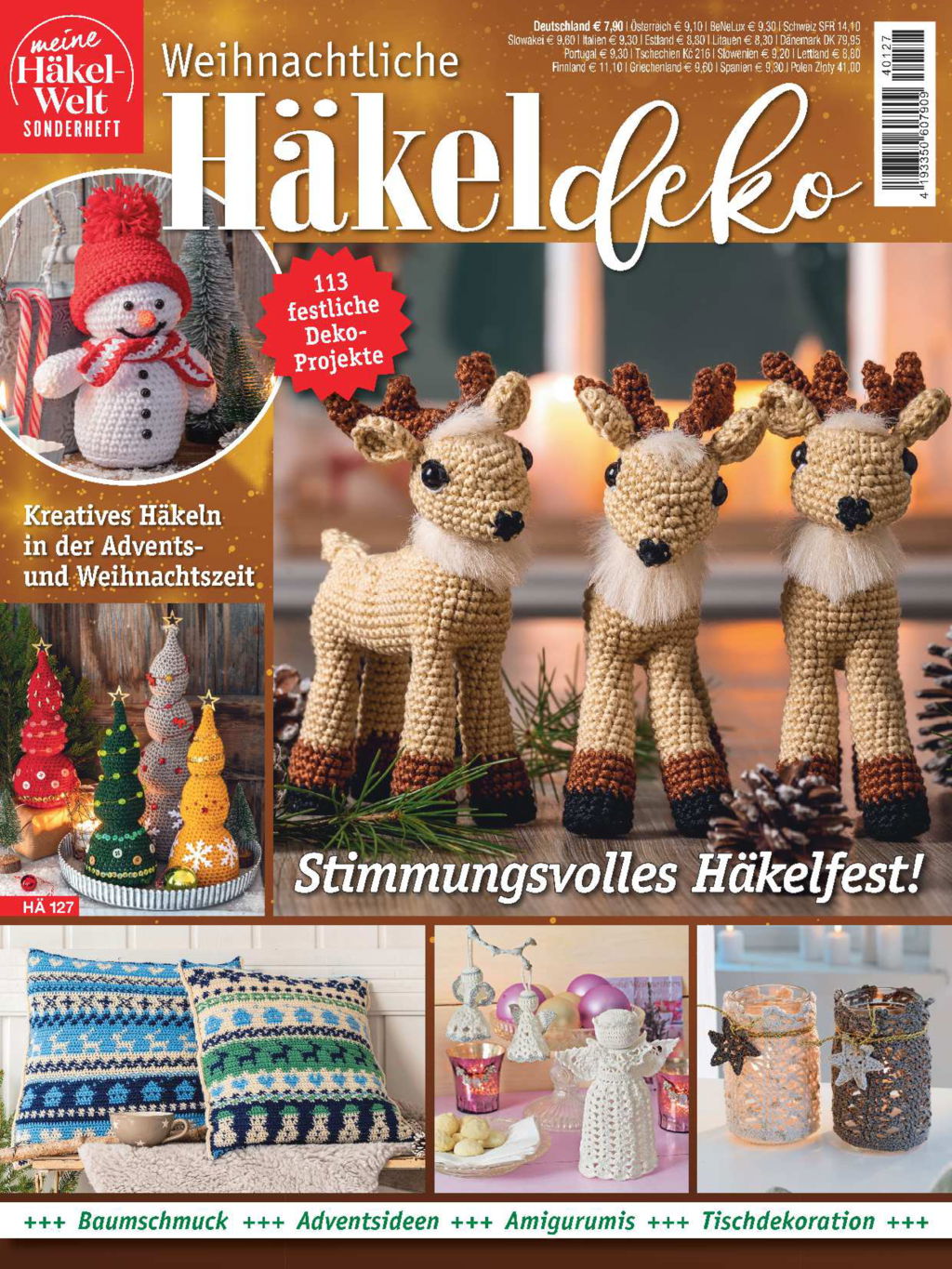 In dieser Zeitschrift warten 113 Häkelanleitungen auf euch, die unbedingt zum Weihnachtsfest dazugehören: Winterliche Impressionen in weißer Pracht, Schneemänner, Adventskalender, Engelchen, knuffige Wichtel, Rentiere und Nikolaus, farbenfroher Christbaumschmuck und festliche Kränze … Mit diesen heimeligen und fantasievollen Ideen genießt ihr entspannte Häkelstunden und dürft euch auf ein festlich geschmücktes Zuhause freuen. Wir wünschen euch viel Freude beim Häkeln und frohe Weihnachten.