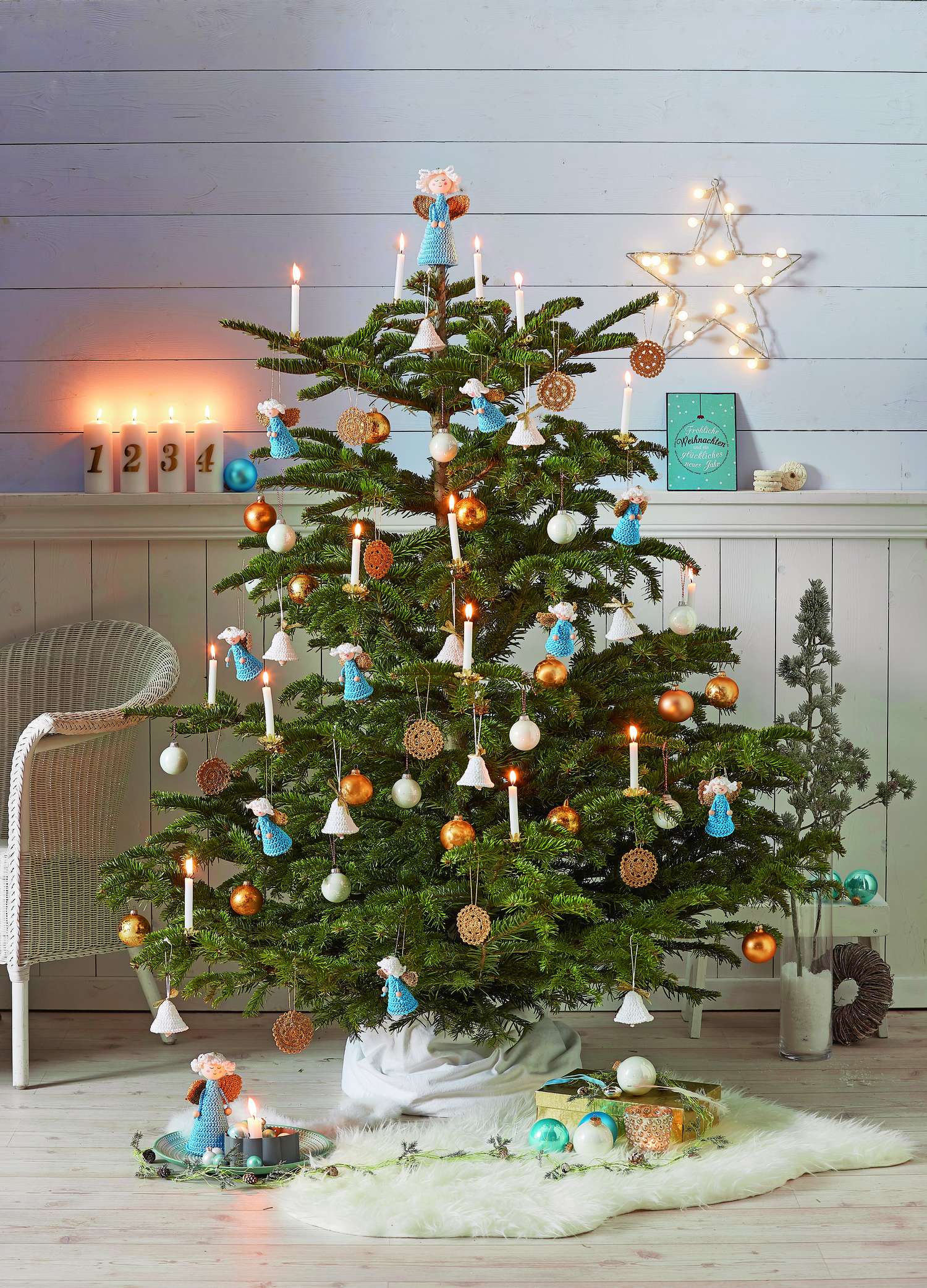 Die Vorfreude auf Weihnachten findet ihren Ausdruck in einer festlichen Dekoration – mittels Häkelnadel und den 75 abwechslungsreichen Anleitungen aus diesem Magazin wird dies spielend gelingen! Die Adventszeit wird noch schöner mit Häkel-Türkranz, Gardine, Engelchen, Häkelgebäck, Christbaumschmuck, festlichem Tisch-Schmuck, Küchenhelfern und zauberhaften weihnachtlichen Stillleben. Einige Filethäkeldesigns sind in unserer Auswahl auch mit dabei. Genießt eure Häkelzeit, kreative Adventstage und ein fröhliches Weihnachtsfest!