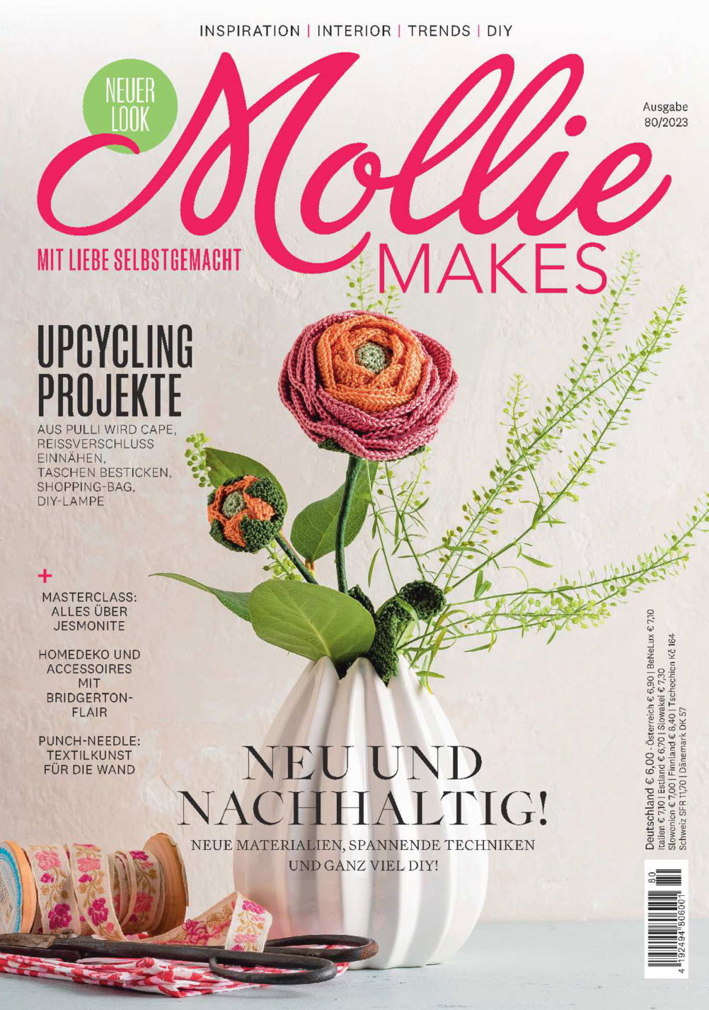 Wollen wir nicht alle etwas nachhaltiger leben? Mit dieser Ausgabe von Mollie Makes zeigen wir dir neue und nachhaltige Projekte. Wir machen aus einem alten Strickpulli ein niedliches Cape, peppen ein Kleid mit gestickten Taschen aus, zeigen, wie man einen Reißverschluss ganz einfach austauschen kann, und besticken eine Shopping-Bag. In unserer Masterclass zum Thema Jesmonite erfahrt ihr alles über das trendige Material und natürlich könnt ihr das gelernte gleich anhand einiger DIYs ausprobieren. Es gibt also einiges zu entdecken – worauf wartest du noch?