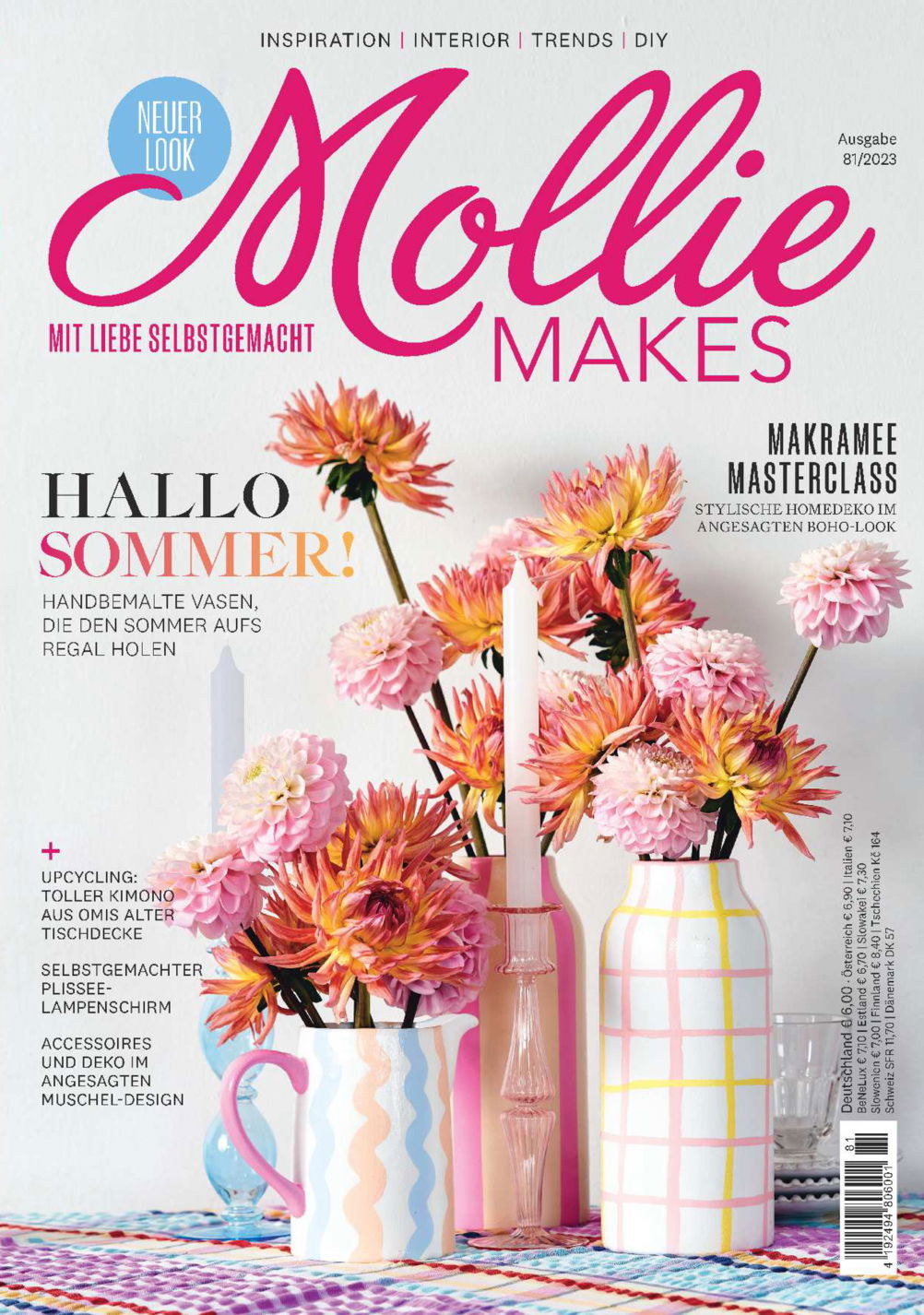 In dieser Ausgabe von Mollie Makes dreht sich alles um «slow living» und darum, sich Zeit zu nehmen für die kleinen schönen Dinge. In der Makramee Masterclass zum Beispiel lernt ihr die Grundlagen des Makramee-Knüpfens anhand toller Projekte kennen. Mit DIYs aus gepressten Blüten werden liebgewonnene Blumensträuße liebevoll konserviert. Geliebte Tischdecken oder Bettwäsche von Omi bekommen dank Nähmaschine und etwas Kreativität wieder neues Leben eingehaucht. Natürlich erwarten euch auch in dieser Ausgabe wieder tolle Homestorys, Trend-Reports und viel Spannendes zu eurem Hobby.