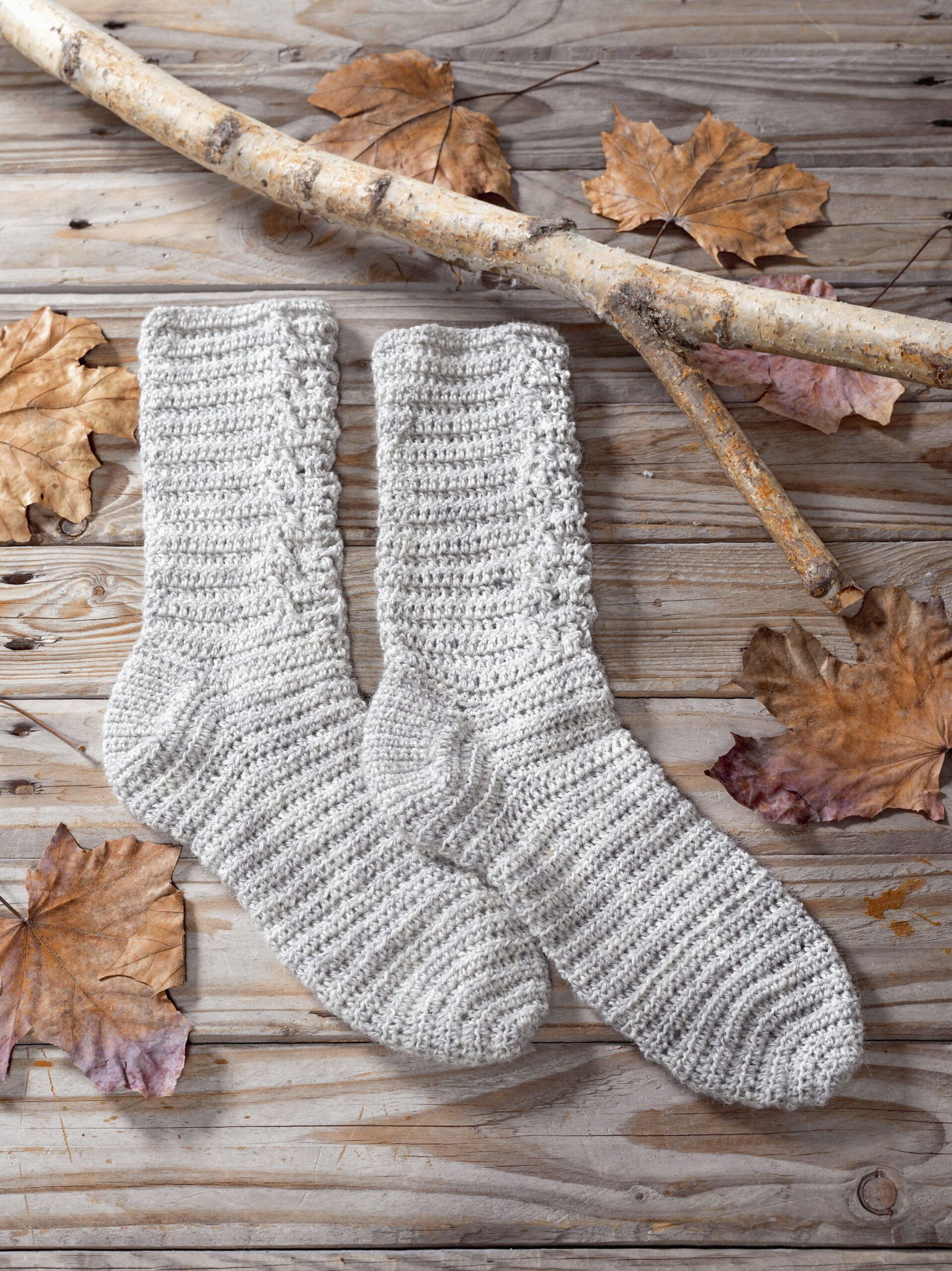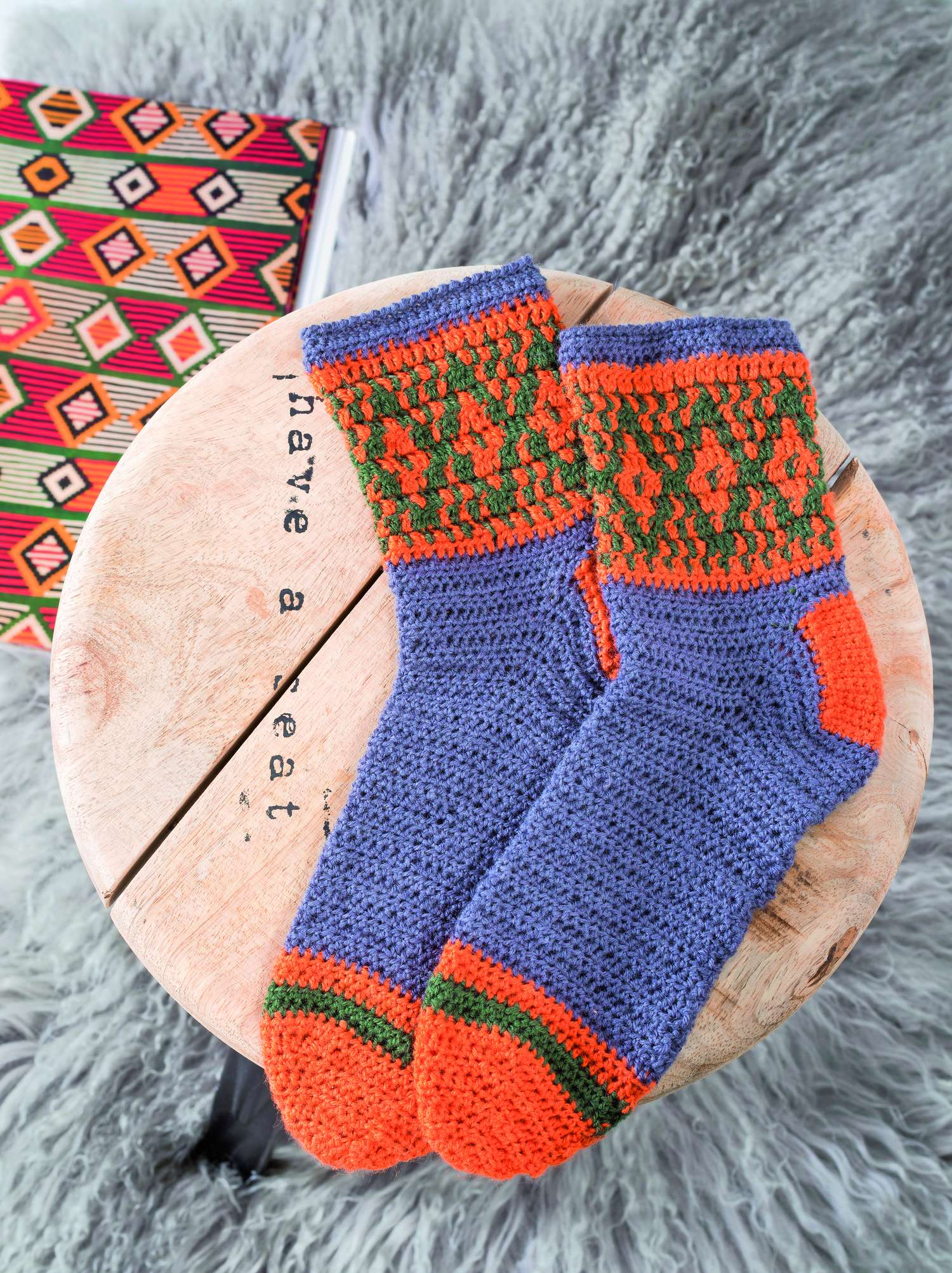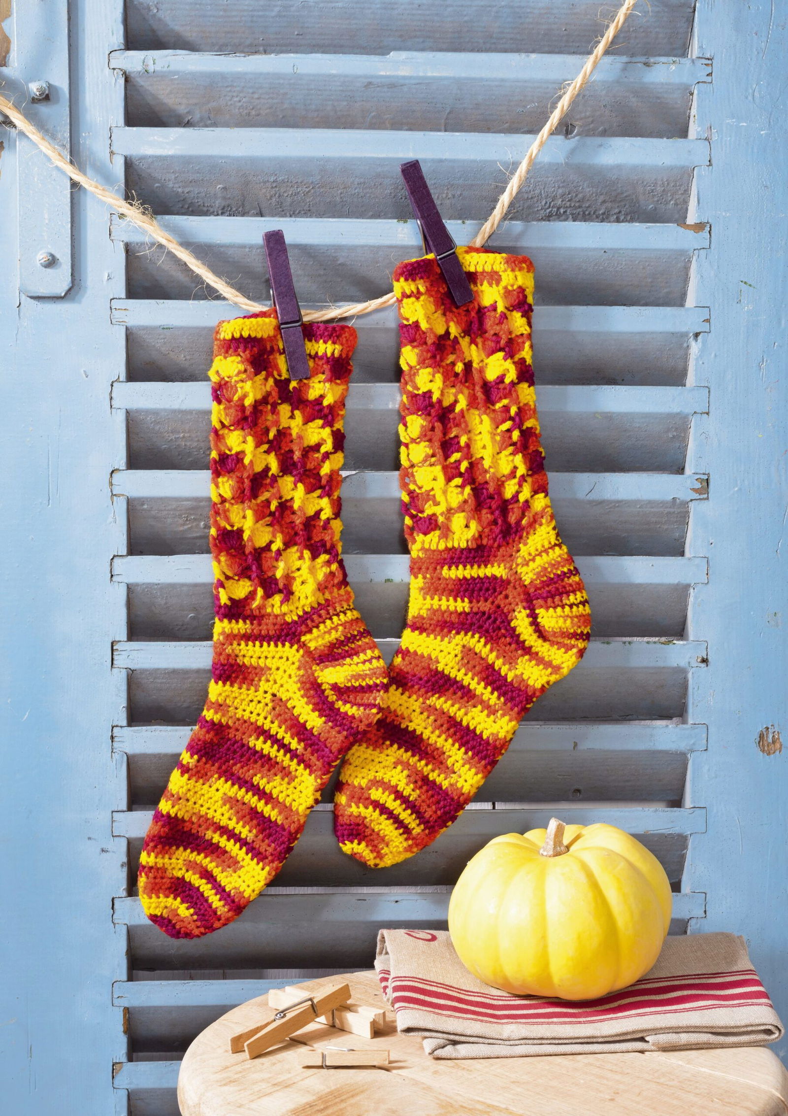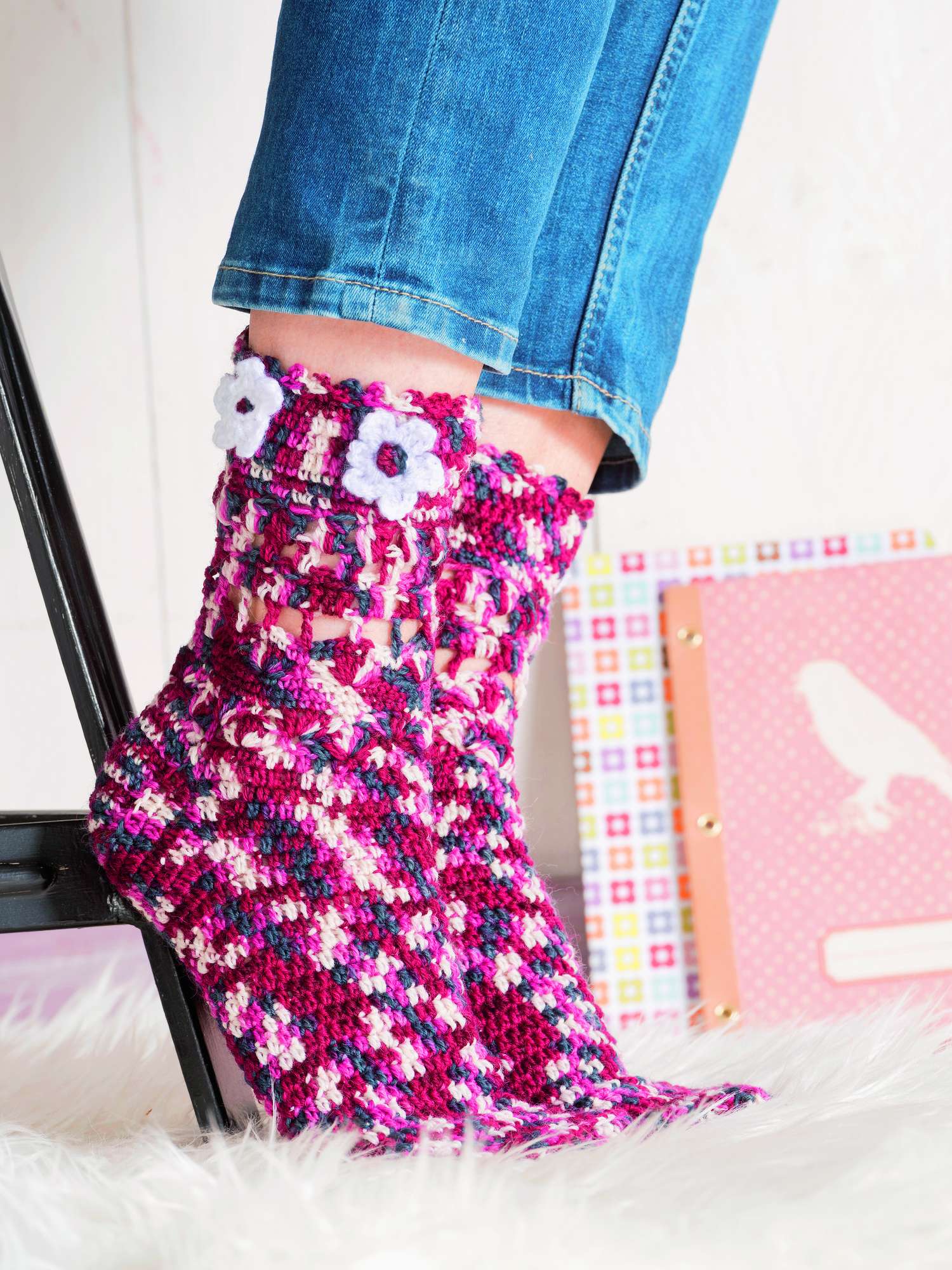 Ganz besonders möchten wir auf die Sofa-Socken hinweisen. Aus 8-facher Wolle sind sie nicht nur ganz schnell gehäkelt,