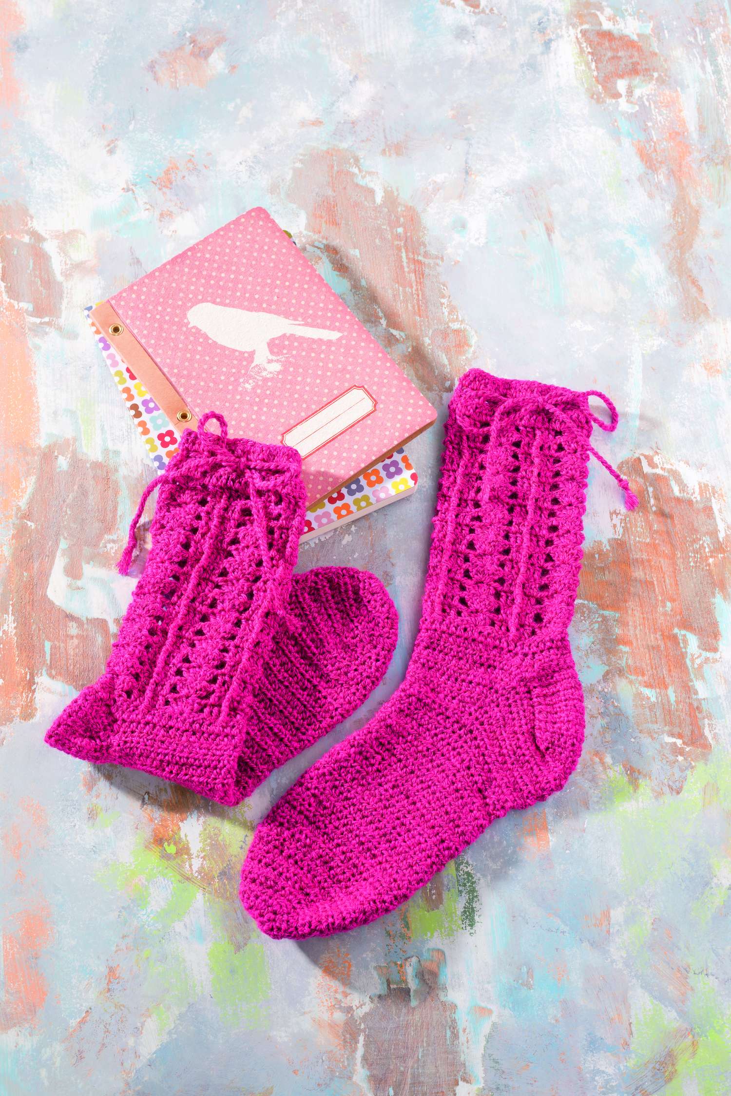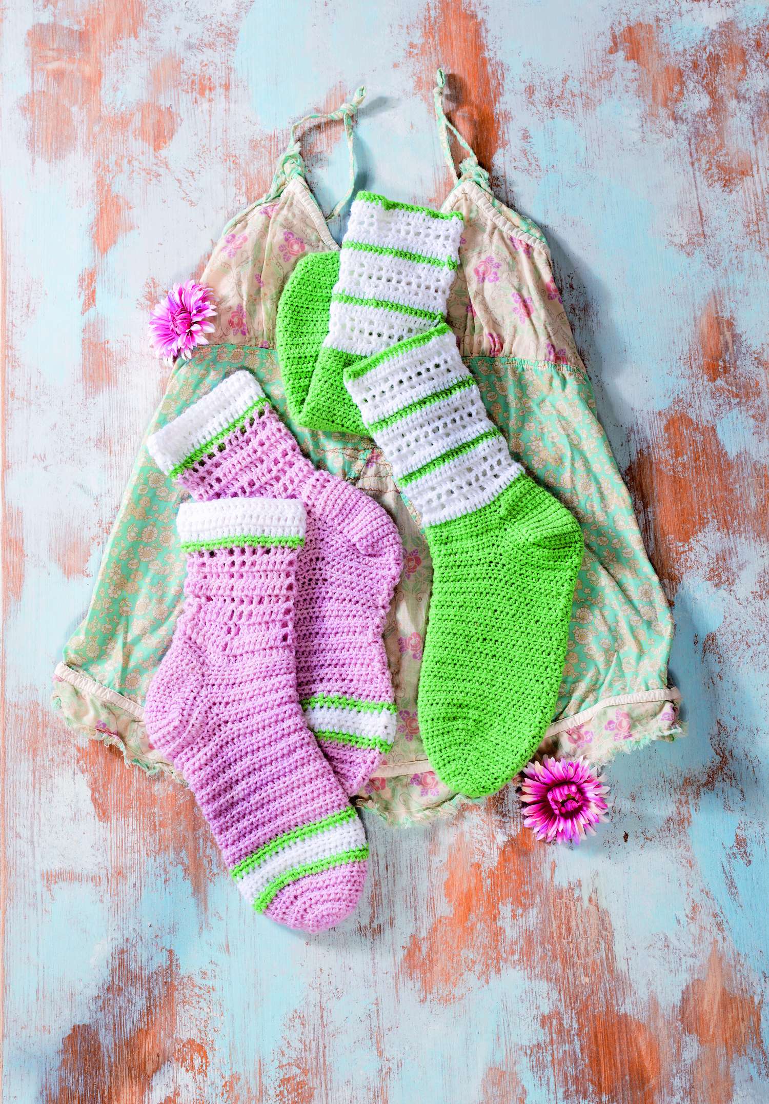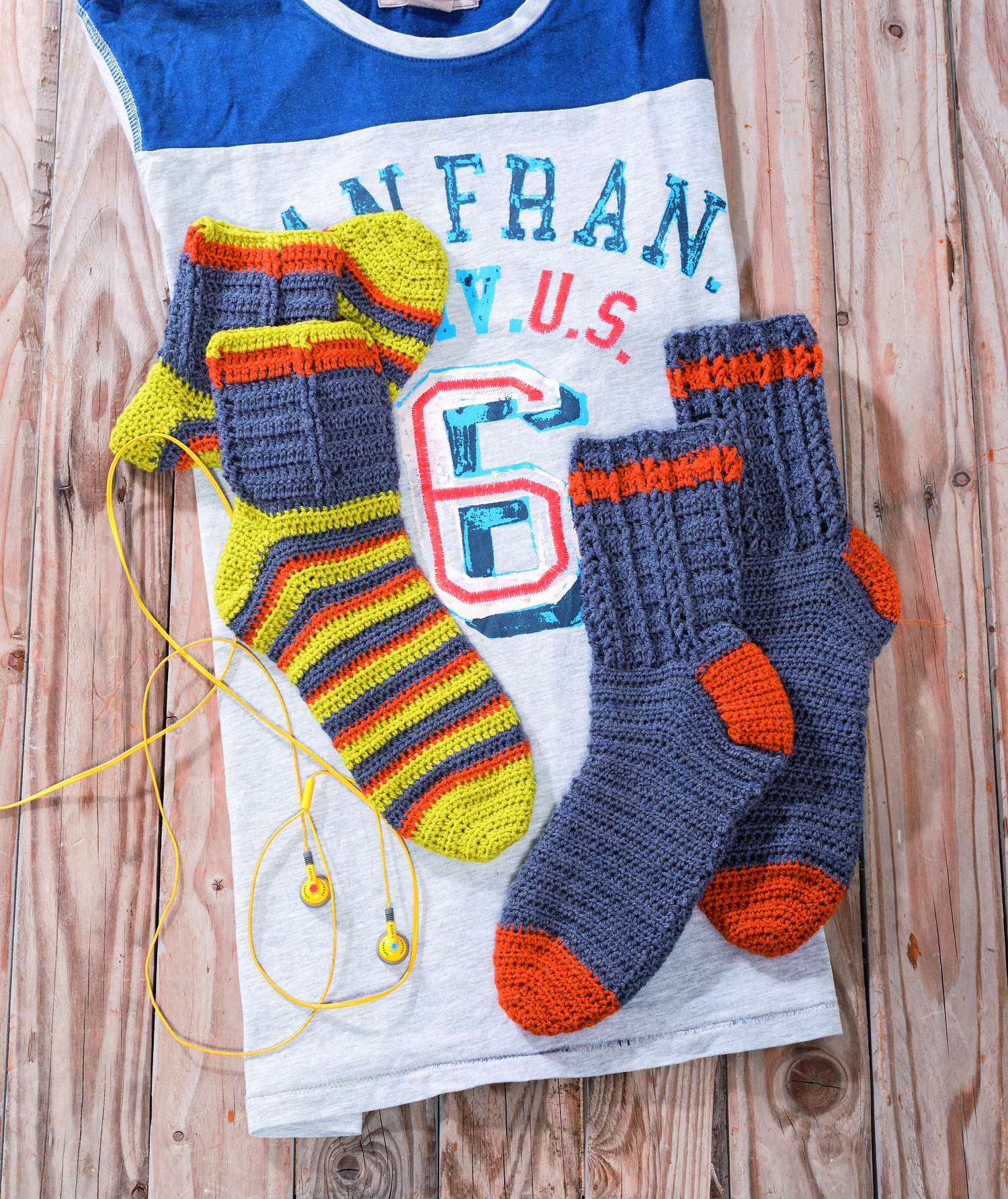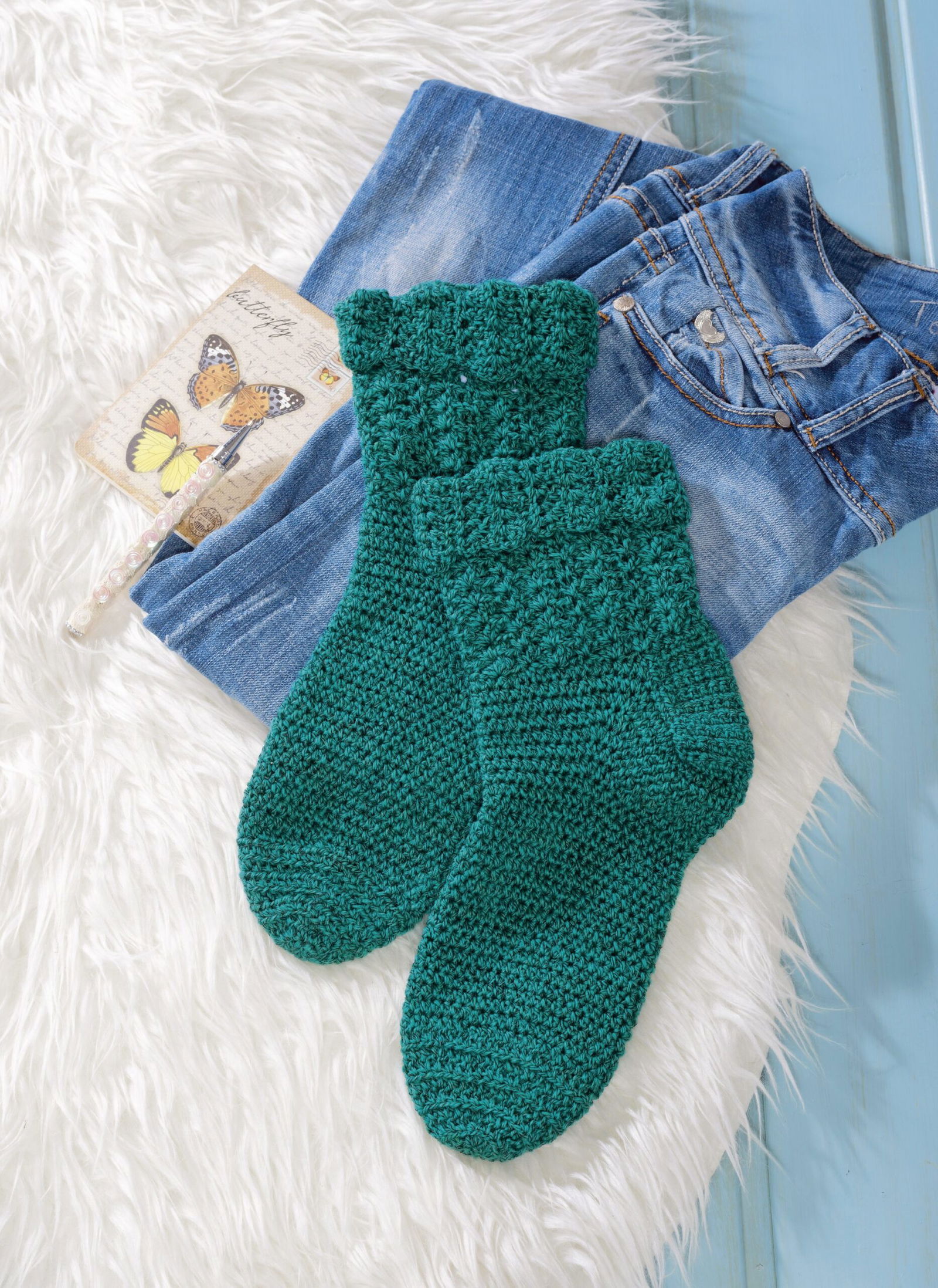Ganz besonders möchten wir auf die Sofa-Socken hinweisen. Aus 8-facher Wolle sind sie nicht nur ganz schnell gehäkelt,