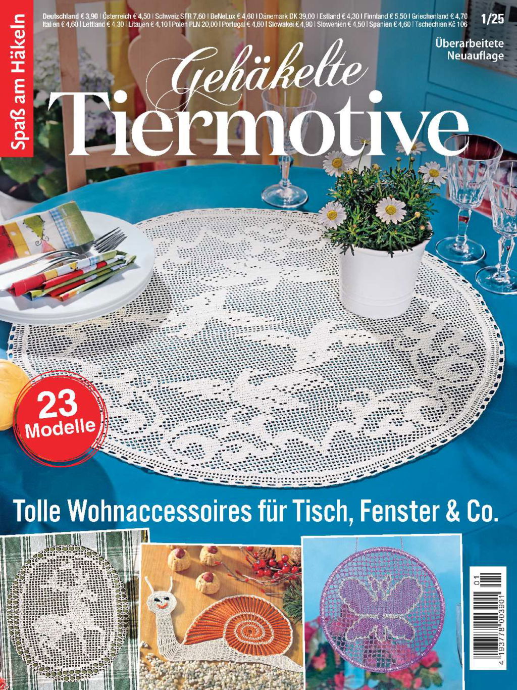 Mit dekorativen Häkelmaschen auf denen Tiermotive verewigt kannst du dir Impressionen aus der Natur oder vom letzten Zoobesuch in dein Zuhause holen. Unser Angebot an Motiven reicht von kleinen Faltern und Vögeln über Mäuschen, Meerestiere, Enten und Schwäne bis zu Hirschen und asiatischen Drachen. Kleine und große Modelle findest du zur Auswahl und alle sind zum Selbermachen. Somit wird für Einsteiger und Könner, Eilige und Geduldige das Richtige dabei sein. Anleitungen, Zählmuster und Häkelschriften erleichtern das Nacharbeiten beim Filethäkeln. Suche dir deinen tierischen Favoriten aus den 23 Modellen aus und greife wieder einmal zu Nadel und Garn.