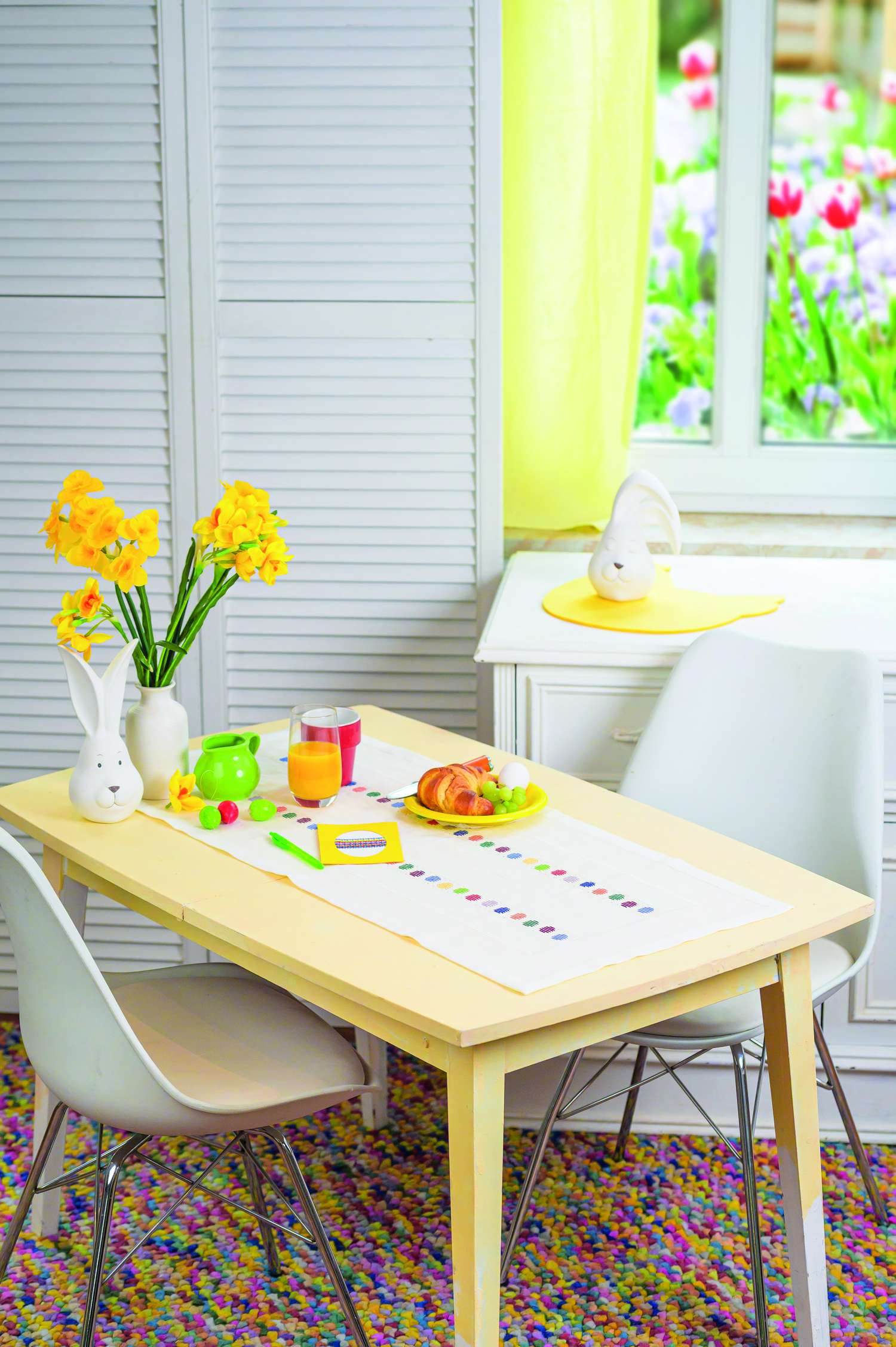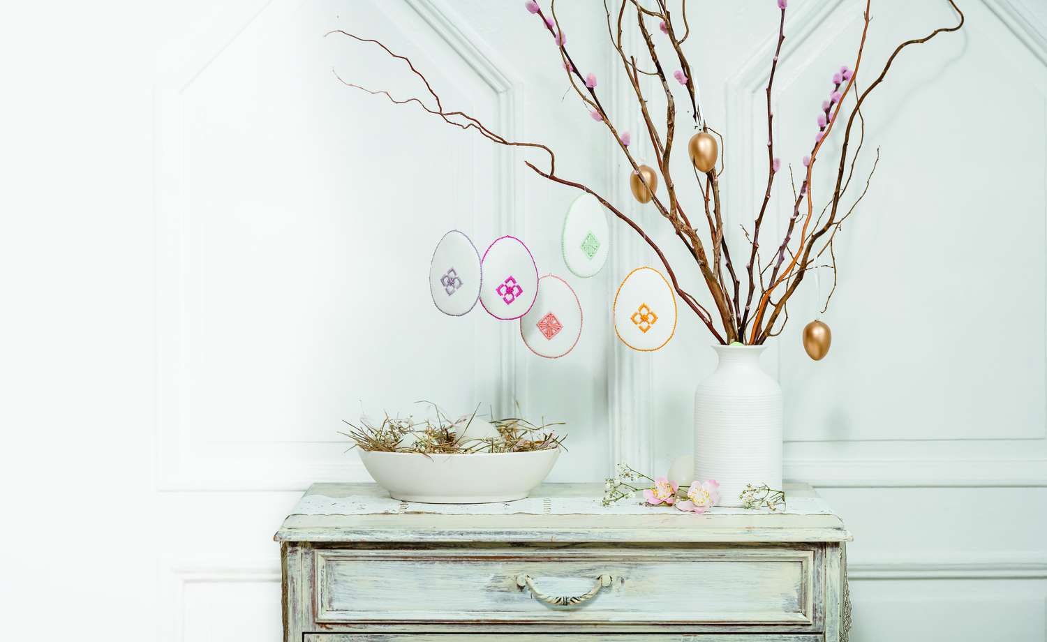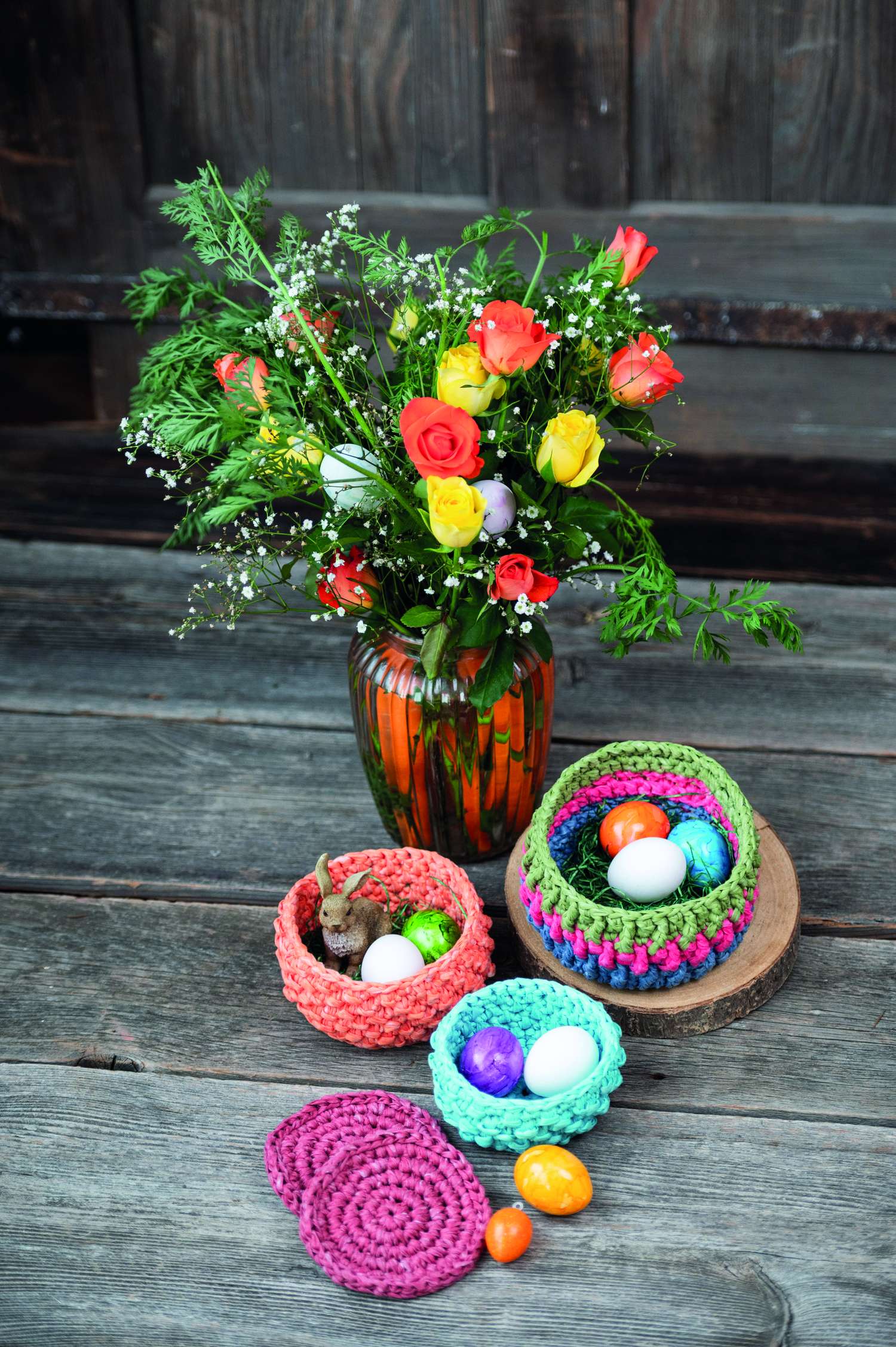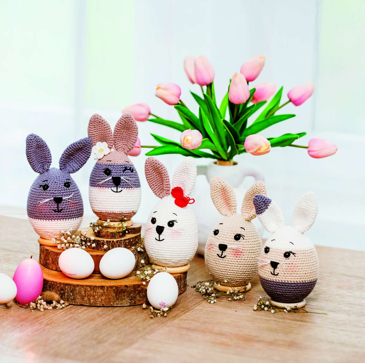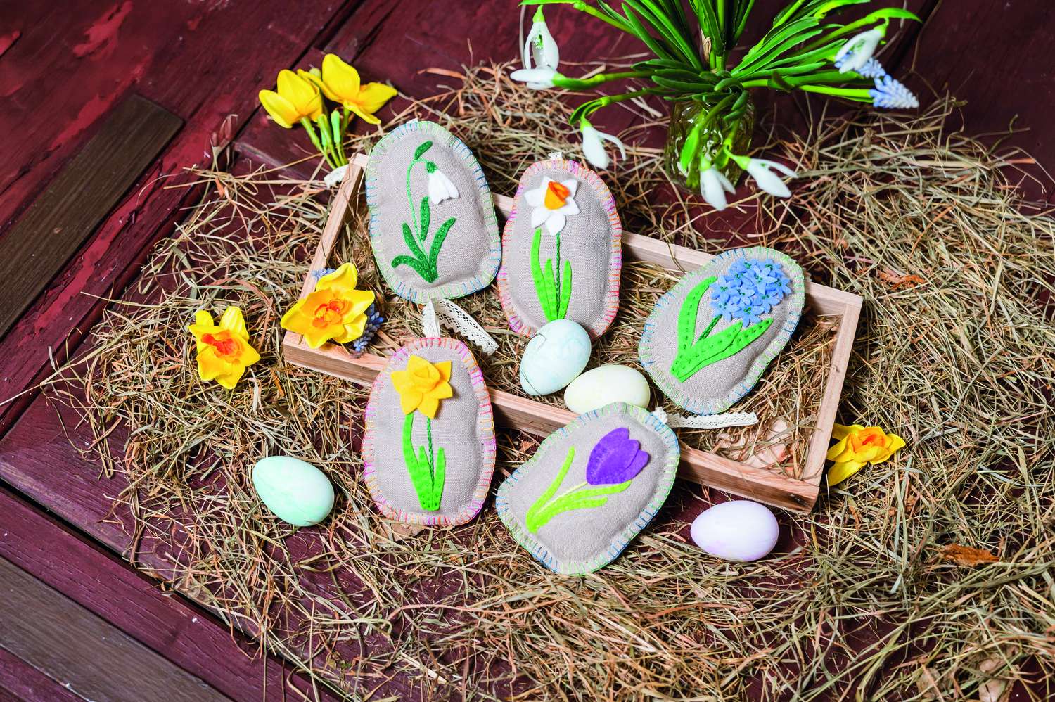 Der Frühling naht und das Osterfest steht auch wieder vor der Tür. Völlig verrückt und lustig sind die gehäkelten Hasen in ihren Rennautos. Gehäkelt, genäht und appliziert werden die kreativen Hasennester. Hier passen schöne Überraschungen für Ostern rein. Für die Technikbegeisterten erklären wir die traditionelle Technik der Punto Antico-Stickerei, in der ein Leinensäckchen, ein Duftkissen und fünf Ostereier in Perfektion gestaltet wurden. Es gehört einfach dazu, unser Zuhause mit allerlei Eier-Varianten zu schmücken. Die kleinen und großen gehäkelten Eierköpfe bringen jeden zum Schmunzeln. Noch einmal kuschelig wird es mit den gestrickten Socken mit Hasenmotiven in der Norwegertechnik. Wie wäre es mal mit gehäkelten Bilderrahmen? Sie bringen Stimmung in dein Heim und eignen sich hervorragend als Geschenk. Die Klöppel-Fans finden hier eine Anleitung für ein zartes Osterdeckchen in Lila und Orange. Im Modestrickteil findest du bezaubernde Modelle in harmonischen Tönen für den Frühling. Dies und vieles mehr findest du in dieser Ausgabe von Anna Handarbeiten. Viel Spaß bei deinen neuen Projekten!