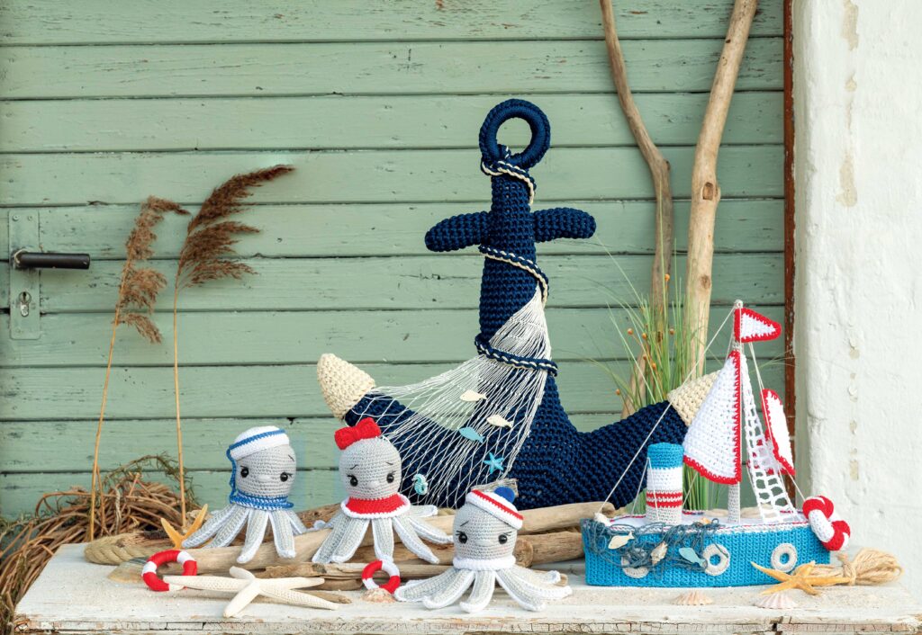 Wie wäre es mit einer kreativen Auszeit mit unseren neuen Handarbeitsideen? Gönne dir ein wenig Urlaubsfeeling mit den dreidimensional gepunchten Booten, dem gehäkelten Fischkutter, einem stabilen Anker oder den niedlichen Oktopussen. Unser Annagurumi des Monats ist die herzige Katze Lucky. Fabelhaft magisch und bunt wird es mit den zauberhaften Einhörnern. Als Kuscheltier, auf einer gemütlichen Patchwork-Decke und einem Wandbehang bereichern sie das Leben mit kunterbunter Lockenmähne. Neue Designermaschen bringen im Modestrickteil frischen Wind in die Sommer-Looks. Tops, Shirt und ein großes Dreieckstuch vermitteln ein gutes Gefühl voller Lebensfreude. Für alle Kreuzstich-Fans kommen filigrane Federn auf einer Tischdecke, Serviette und einer exklusiven Grußkarte angeschwebt. Im Lehrgang wird ein Rock mit einer außergewöhnlichen Negativ-Applikation genäht. Wir erklären dir Schritt für Schritt in Wort und Bild, wie du zu diesem fantastischen Ergebnis kommst. Sie sind süß, sie sind cool und jeder liebt sie – Emojis. Gut gelaunt präsentieren sich diese Gesichter als gehäkelte Fensterbilder. Freude verspricht auch die gehäkelte Umhängetasche in Form einer Orange in der Rubrik Annabell. Jetzt sitzen wir oft draußen und trinken etwas Kühles. Mit den fruchtig-frischen Kissen, Glasabdeckungen und Untersetzern in leckerer Fruchtoptik genießen wir die Sonne noch intensiver. Eher sanft, in natürlichen Erdtönen, zeigen sich hingegen die Makramee-Flaschenbezüge und die Schildkröten. Neugierig geworden? Dann schau rein in diese Ausgabe Anna Handarbeiten!