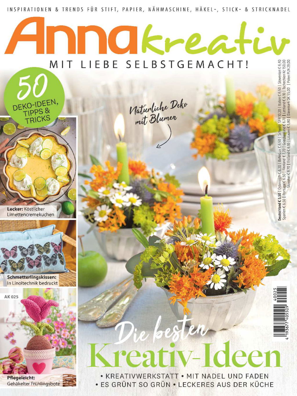 Entdecke zahlreiche, kreative Ideen für tolle Dekorationen zum Basteln, Zeichnen, sowie Floristisches und originelle Koch- und Backrezepte. Du suchst Anregungen für das Gestalten von ausgefallenen Deko-Objekten? Oder Tipps und Rezepte für eine gelungene Grillparty oder ein Picknick im Grünen? Für Kreativ-Fans zeigen wir, wie du aus Omas alten Porzellantellern eine stylische Wanddeko zaubern kannst. Du liebst Blumen? Hier gibt es Anleitungen für hübsche Frühlingskränze und blumige Gestecke. Wer gerne mit Nadel und Faden oder Wolle arbeitet, findet auch dazu hübsche Kreativideen. Zusätzlich gibt es on top eine Fülle an Infos über Neues vom Handarbeits- und Kreativmarkt, Trendiges aus dem Internet und tolle Shoppingtipps für die Gartensaison. Alles getreu unserem Motto: Mit Liebe selbstgemacht!