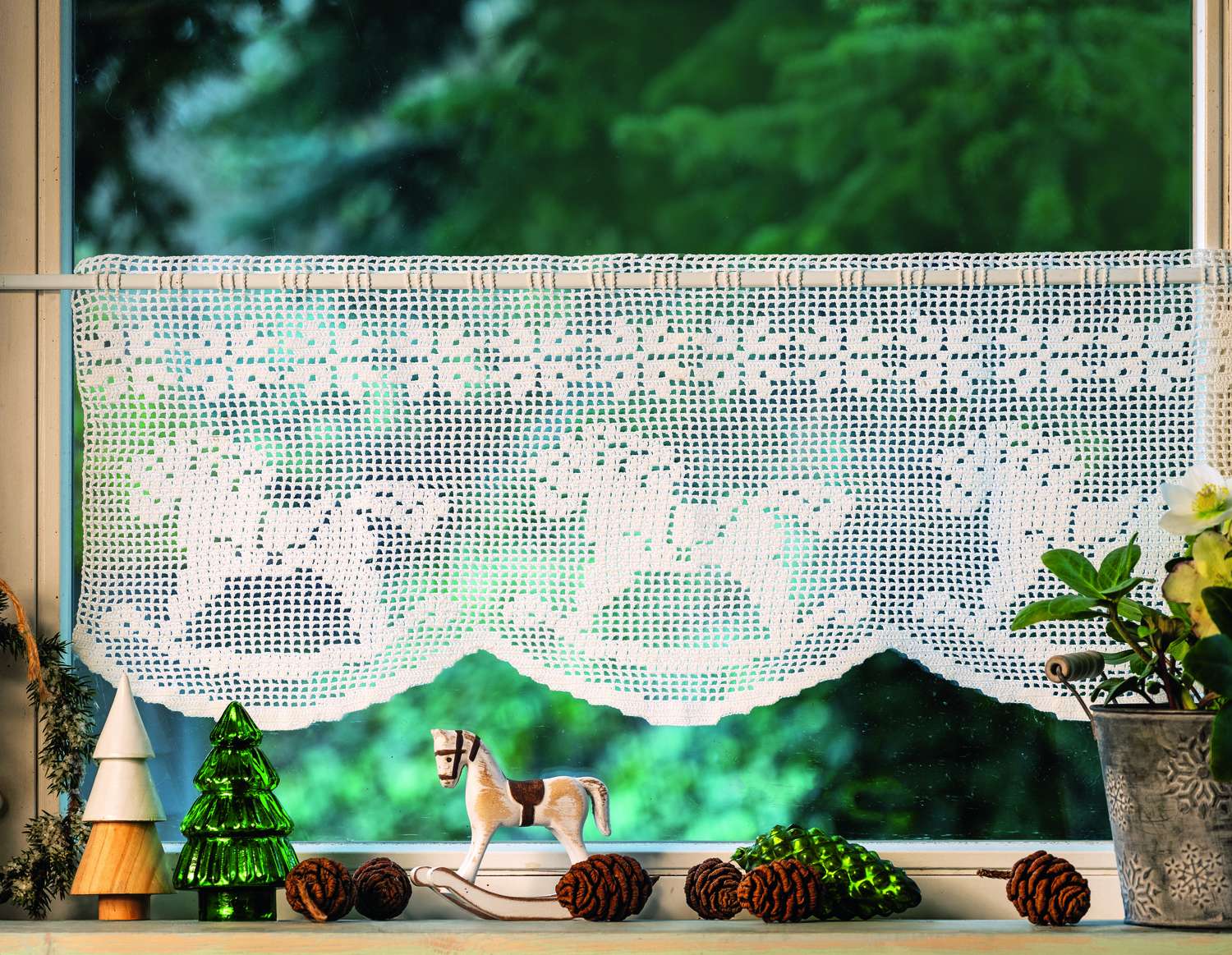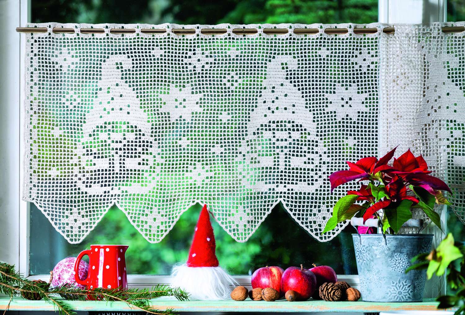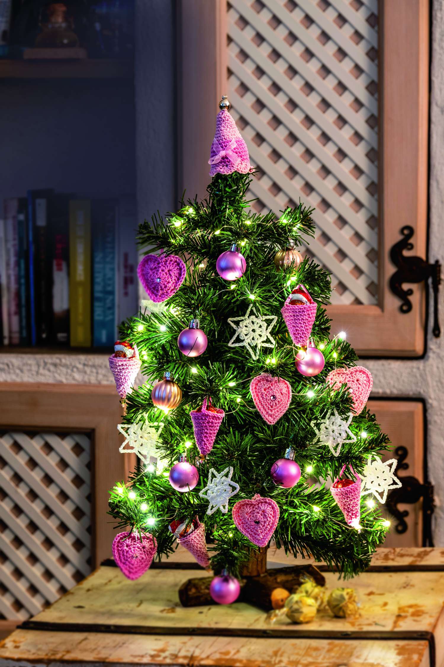Adventszeit ist Häkelzeit! Hier findest du 57 Anleitungen für eine Fülle von Häkelideen zum Schmücken und Verschenken. Dekoriere dein Heim mit Wichteln, Schaukelpferdchen und weihnachtlichen Anhängern, die für den Christbaum, Geschenke oder als Adventskalender verwendbar sind. Auch das Thema Tischschmuck für die festlich gedeckte Weihnachtstafel kommt nicht zu kurz. Wie immer gibt es auch einige beeindruckende Motive in Filethäkelei: zum Beispiel die Gardine mit Engelchen oder das Fensterbild mit dem Nikolaus auf dem Schlitten, dargestellt in einer Schneekugel. Auch ganz neu und nur bei uns: kleine gehäkelte Zuckertüten, die den Weihnachtsbaum zum Naschbäumchen machen.