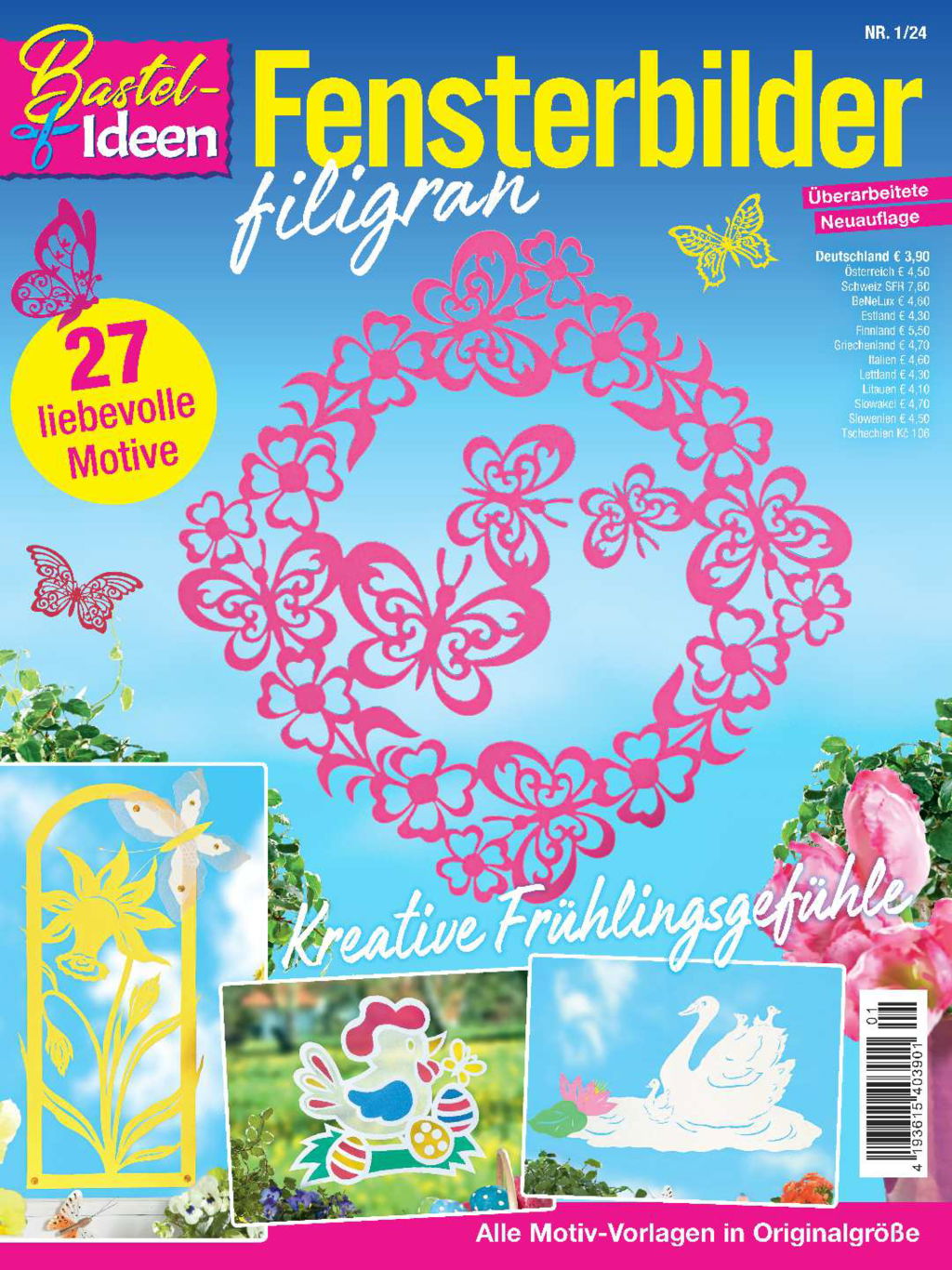 Filigrane Fensterbilder sind seit Jahren beliebt und gleichbleibend aktuell. Für diese Zeitschrift wurden 29 tolle Papierideen gesammelt, mit denen Frühling und Ostern begrüßt werden können. Motive in strahlenden Farben holen auch an trüben Tagen die Sonne ans Fenster und wer Pastelltöne liebt, findet viele zauberhafte und romantische Ideen zum Nacharbeiten. Der Osterhase und seine Freunde sind natürlich auch vertreten und lassen die Vorfreude aufs Osterfest aufleben. Praktisch: Die Vorlagen finden sich in Originalgröße zum Abpausen auf einem Arbeitsbogen.