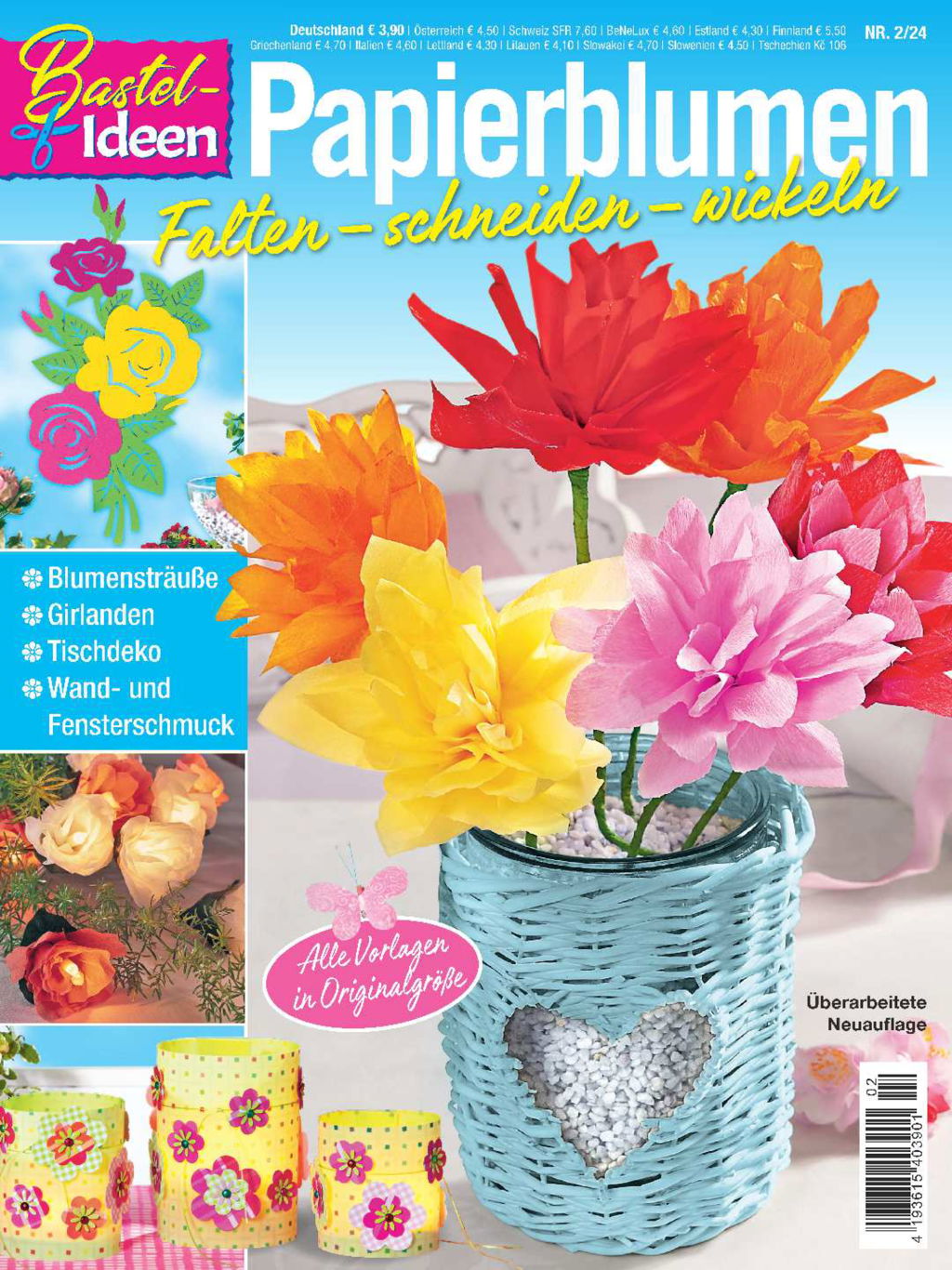 Hier treffen sich Blumen und Papier: Florale Schönheiten, die mit ihrer Gestalt und Farbenpracht betören, und Papier – ob als Krepp-, Deko- oder Seidenpapier, solider Bastel- oder Fotokarton oder zartes Transparentpapier – ein einzigartiges, vielseitig einsetzbares Material. Inspiriert von den Vorbildern der Natur zeigen wir Ihnen eine Fülle von Anregungen, wie du mit den unterschiedlichsten Papieren und Techniken wunderschöne Blüten und Blumen falten können. Lass dich bezaubern von den täuschend echt aussehenden Krokussen, dem Narzissenkranz, dekorativen Blütenpompons oder lieblichen Rosenblüten, die als Lichterkette für schöne Stimmung sorgen. Oder wie wäre es mit einem Löwenzahn aus Papier als Wandbild? Außerdem findest du in dieser Zeitschrift farbenfrohe Tischdekorationen, romantische Margeriten-Girlanden, originelle Geldgeschenke, Grußkarten und Fensterbilder. Du wirst überrascht sein, dass sich selbst aufwändig erscheinende Modelle überraschend einfach nacharbeiten lassen, dank der detaillierten Bastelanleitungen und Vorlagen in Originalgröße. Wir wünschen Ihnen dabei viel Freude. (Überarbeitete Neuauflage.)