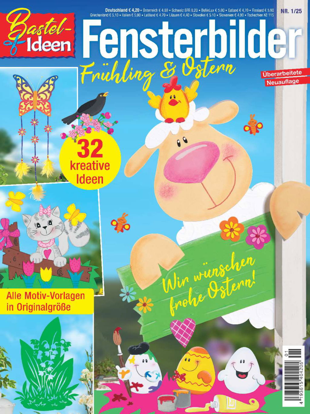 Der Winter hat nun ausgedient, die ersten Blumen trauen sich mutig, ihre Blüten zu öffnen und so wird es auch für uns Zeit, unsere Fenster frühlingsfrisch zu gestalten. In dieser Zeitschrift findet ihr 25 Motive, mit denen ihr Fensterschmuck als Fensterbild, Bordüre und Kranz gestalten könnt. Mit dabei: zahlreiche Tiermotive (wie zum Beispiel der Rabe beim Frühjahrsputz), Blumen & Blüten sowie Osterhasen und kecke Ostereier. (Überarbeitete Neuauflage.)