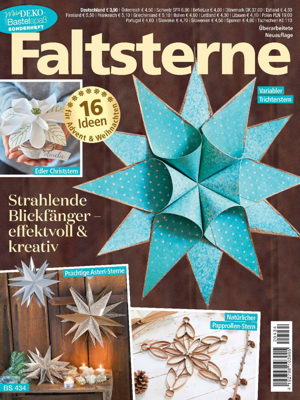 Fast jedes der 16 Modelle lässt sich auf viele weitere Arten inszenieren, einfach indem man die Größe verändert oder die Papiere austauscht – schon ergeben sich neue Anwendungsmöglichkeiten. Warum nicht mal einen Stern in einem 3D-Bilderrahmen verschenken, im Miniformat an Ohrhaken oder in Form eines Mobiles von der Decke regnen lassen. Viel Freude beim Ausprobieren & Dekorieren.