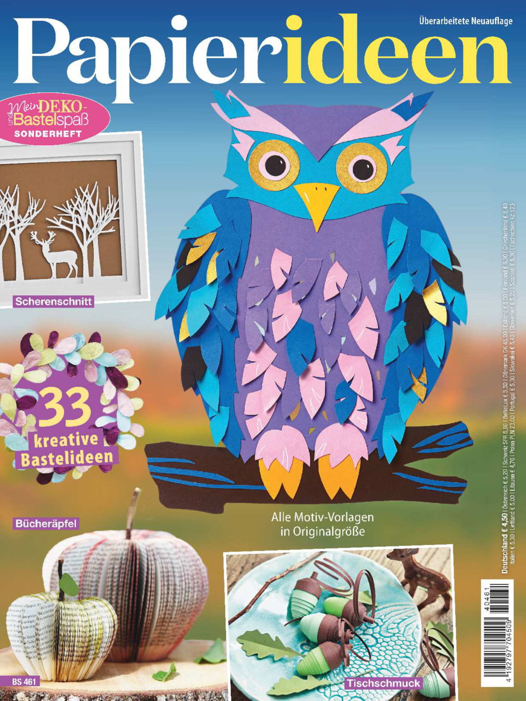 In dieser Zeitschrift sind 33 herbstliche Bastelideen versammelt, für alle, die gerne mit Papier arbeiten. Darf es ein Kranz aus Seidenpapier sein, ein Scherenschnitt aus Bastelkarton, kunstvoll gefaltete Kristalle aus Papier, Grußkarten, Tischdeko, Fensterbilder, oder sind vielleicht Vögelchen aus Pappmaché die Dekoobjekte der Wahl? Zum aktuellen Thema Upcycling gibt es beispielsweise eine Anleitung für die stattlichen Buchäpfel aus ausrangierten Büchern. Eine Zeitschrift, so bunt und abwechslungsreich wie der Herbst! (Überarbeitete Neuauflage.)