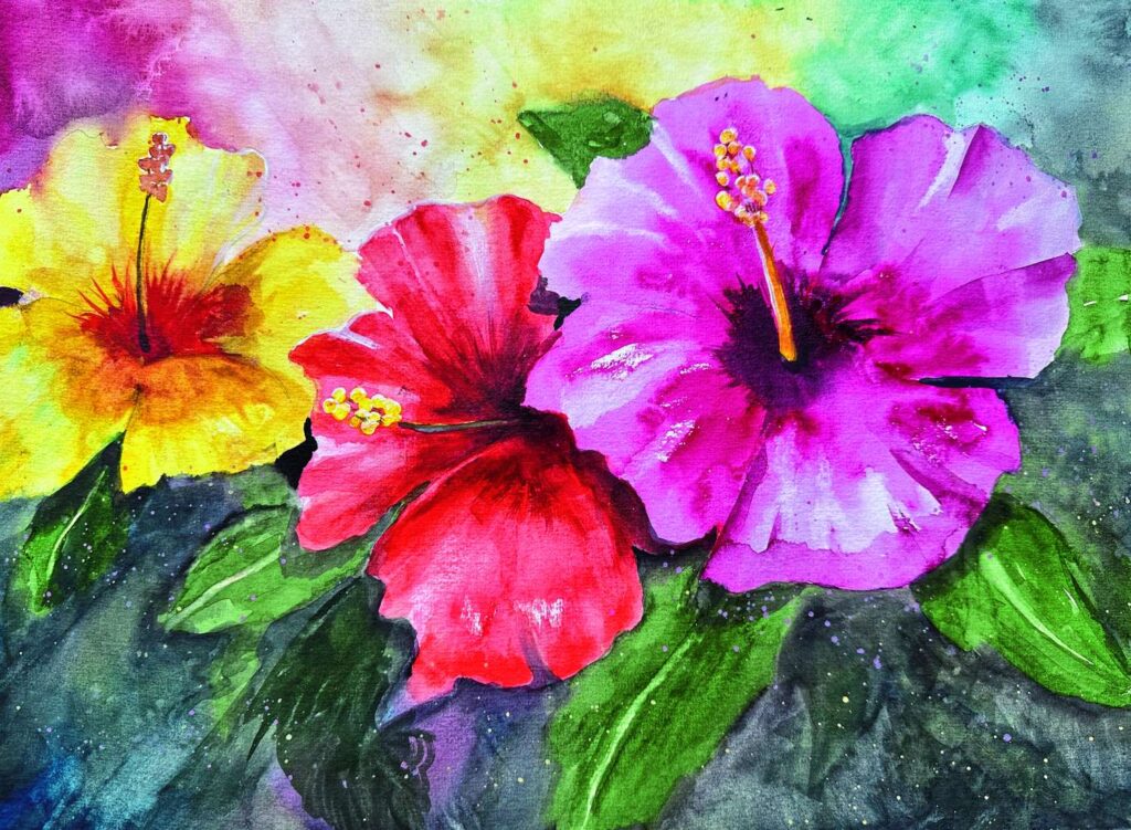 Sommerstimmung pur draußen beim Malen im Freien oder im Atelier. Dafür wollen wir auch in dieser Ausgabe von Mein Kreativ Atelier beitragen. Zum Beispiel mit den großen wunderschönen Hibiskusblüten oder einem malerischen, mediterranen Bergdorf. Ein tropischer Mixmedia-Fisch entsteht durch eine Kombination aus fluoreszierenden Acrylfarben, Acryltinten und weichen Ölpastellen, die das Motiv auch im Dunkeln leuchten lassen. Betrete mit uns auch neue kreative Wege. Unsere Malschule Chance the color soll dich dazu motivieren, gewohnte Pfade zu verlassen und Bildmotive farblich so zu gestalten, wie es dir am besten gefällt. Etwas Mut gehört schon dazu, einen Blazer oder eine Bluse im Street-Art-Look zu bemalen. Überwinde innere Schranken und lege einfach los. Wenn mal etwas daneben geht, kein Problem, denn bei diesem Modestil ist alles erlaubt, Kleckse inklusive. Designbeispiele und Technik-Tipps bekommst dazu in unserem Workshop. Und: Mit dem Bemalen alter Kleidungsstücke bist du nachhaltig kreativ. Wir zeigen dir auch, was man aus alten Suppenschüsseln machen kann. Lass dich von den bemalten Terrinenfiguren inspirieren. Viel Spaß beim Malen und Experimentieren!