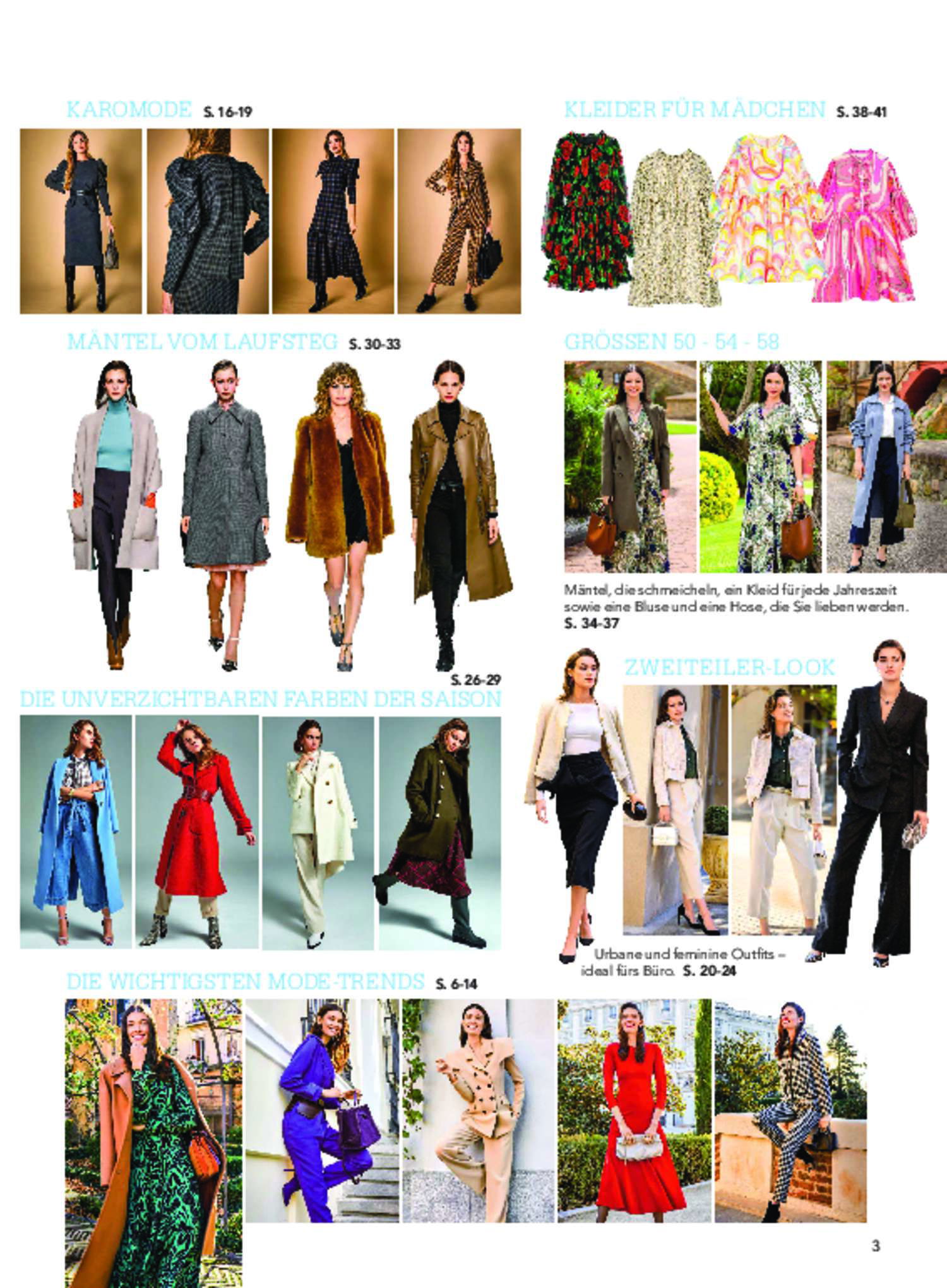 Bei jedem neuen Saison-Start verspüren wir Lust auf neue Lieblingsstücke für unsere Garderobe. Diana Moden präsentiert dir in dieser Ausgabe die trendigsten Schnitte und Basics mit originellen Details und eleganten, wie auch peppigen Farben. Schicke Karos: Glencheck ist das It-Muster der Saison. Trage es in femininen Schnitten und stilvollen Kombinationen. Unsere Zweiteiler verleihen dir eine lässige Eleganz, perfekt fürs Büro. Lass dich von den vielen Modellen unserer Mäntel überraschen. Einige davon wurden auf dem Laufsteg entdeckt und für dich neu interpretiert. Nicht nur die verschiedenen Schnitte, sondern auch die verschiedenen Qualitäten wie Kunstfell, Kunstleder, Double-Face-Wolle, Tuch und vielem mehr, verleihen diesen Modellen das gewisse Extra. Für die Größen 50 bis 58 haben wir ein Wickelkleid, zwei Mäntel, Hose und Bluse. Für Mädchen von 4 bis 8 Jahre findest du hier bezaubernde Kleider mit romantischen Akzenten. Viel Spaß bei der Auswahl und beim Nähen deiner Lieblingsstücke!