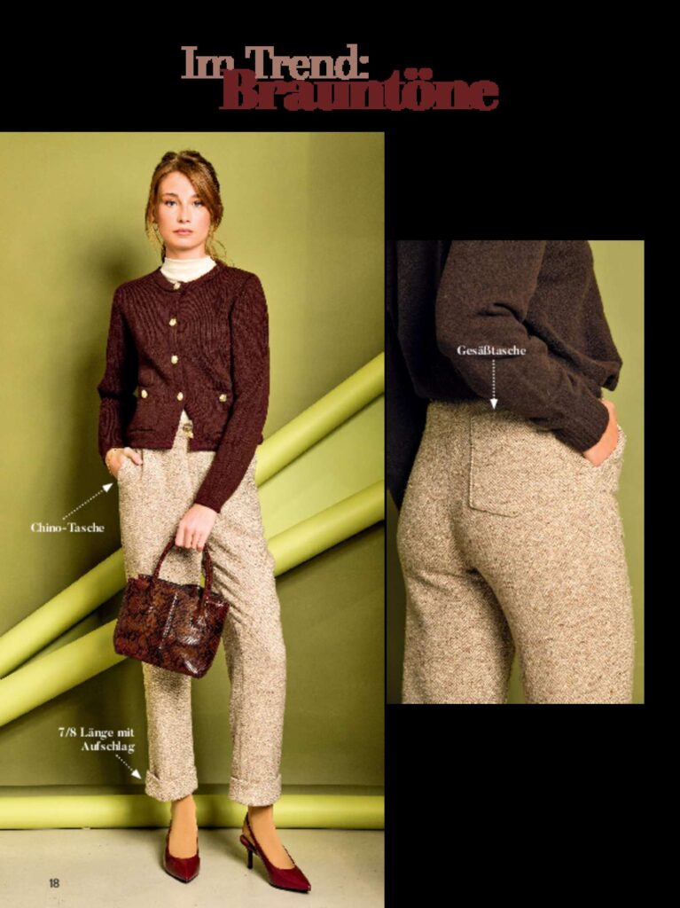 Aktuelle Stoffe und moderne Designs von HILCO machen die neue Ausgabe Fashion-Trends by HILCO so unverzichtbar! Kleid, Hose, Hoodie und Jumpsuit, vier Kleidungsstücke mit bequemen Schnitten und aus weichen Stoffen genäht, begleiten wie eine zweite Haut durch den Tag und vermitteln ein neues Lebensgefühl. In der Rubrik Lieblingsschnitt, 1 Modell, 3 Stoffe, präsentieren wir dir ein feminines Kleid. Es hat den perfekten Sitz, ist superbequem und erscheint, dank der drei unterschiedlichen Stoffe, immer wieder im anderen Look. Ganz neu im Modebild sind Töne von Caramel bis Dunkelbraun. Wunderbare Drucke und Wollstoffe sind jetzt in diesen Farben zu finden. Und nicht wegzudenken sind natürliche Kombinationen in Schwarz und Weiß. Auch eine Jacke mit tiefer Rückenfalte zeigt sich mit drei verschiedenen Stoffen. Da kommt niemand auf die Idee, dass es sich hier um denselben Schnitt handelt. Vier traumhafte Modelle glänzen in vier verschiedenen Grüntönen. Sie alle können, je nach Styling, von sportlich bis elegant getragen werden. Darf es ein bisschen Chanel sein? Dann schau dir auch noch den klassischen Zweiteiler an. Viel Spaß bei der Auswahl deiner Lieblingsmodelle!