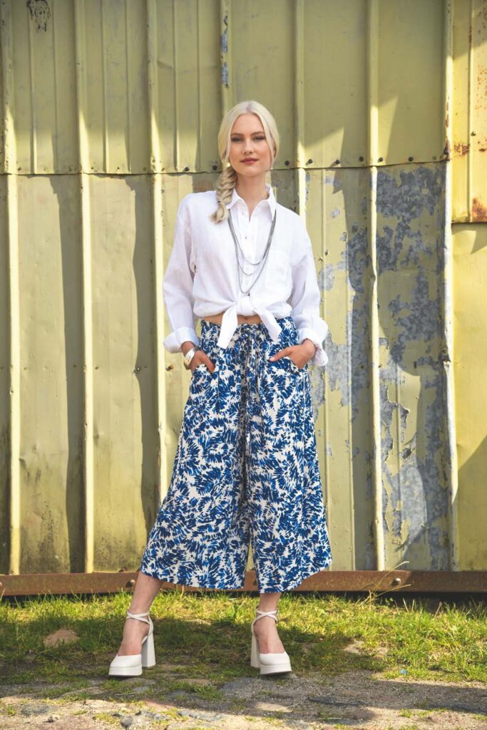 In dieser Ausgabe von Fashion Trends werden dir fantastische Modelle zum Selbernähen präsentiert. Unsere Redaktion hat mit den neuesten Stoffen von Hilco fantastische Modelle für dich kreiert. Der neue City-Look ist aufregend schön. Ob Hemdblusenkleid, Long-Blazer, Kleid oder Hose, diese Modelle dürfen zum Start in den Frühling in deiner Garderobe nicht fehlen. Schau dir an, wie ein Jumpsuit in unterschiedlichen Stoffen, eine komplett andere Wirkung erzielt. Für die heißeren Tage haben wir für dich einen wadenlangen Wickelrock, ein Wickelkleid und einen kurzen Jumpsuit. Zum perfekten Sommer-Look gehört auf jeden Fall die luftige Hose, wadenlang. Schau dir an, wie dieser Schnitt mit unterschiedlichen Stoffen eine andere Wirkung erzielt. Der Sommer setzt auf Dschungel-Liebe. Die neuen, ausgefallenen Prints setzen die Schnitte von Wickelrock, langer Bermudas, Wickelkleid und weiter Blusen-Jacke perfekt in Szene. Ein wahrer Kombi-Partner ist der Sommeranzug. Diesen perfekten Zweiteiler solltest du auf jeden Fall im Schrank haben, egal in welcher Farbe. Freu dich auf diese auserlesenen Modelle. Viel Spaß beim Nähen und Tragen deiner Lieblingsmodelle!