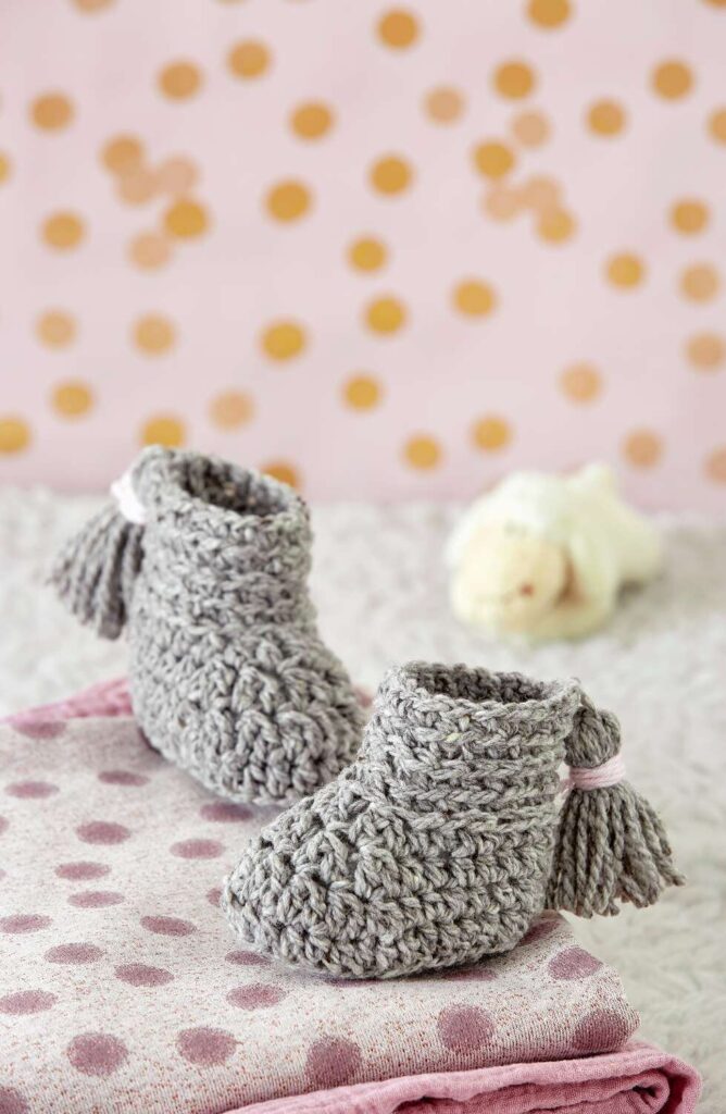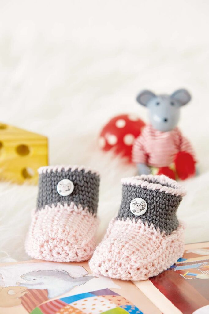 Auch dieses Mal haben wir uns wieder jede Menge kuschelige Schühchen, Stiefel und Puschen für euch ausgedacht, damit es die kleinen Strampelbeinchen rundum warm, weich und herrlich hyggelig haben. Ob trendige Kaktusschühchen, niedliche Haustiere, liebevolle Wald- und Wiesenbewohner oder süße Früchtchen und zarte Pastelllieblinge – all diese Modelle werden gehäkelt und gestrickt aus ganz feiner, besonders weicher Wolle, die sich wunderbar an kleine Füßchen schmiegt.