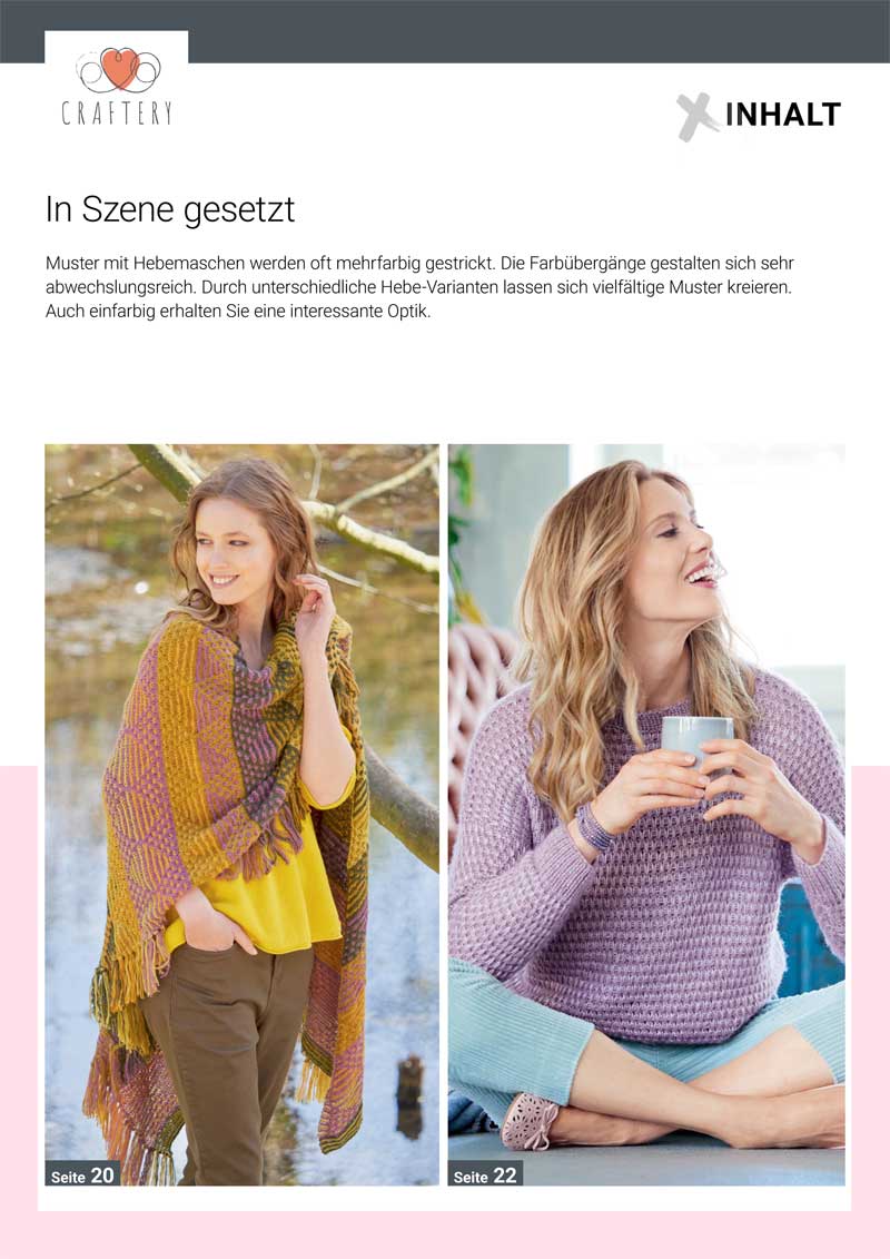 Entdecke die faszinierende Welt der Hebemaschen! Unser E-Magazin bietet dir 20 abwechslungsreiche Musterideen und 2 exklusive Strickmodelle, mit denen du die Technik der Hebemaschen perfekt anwenden kannst.