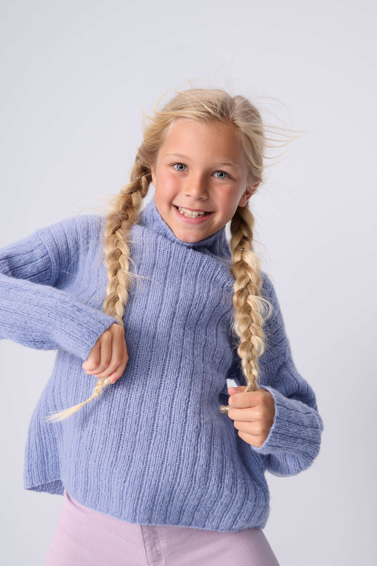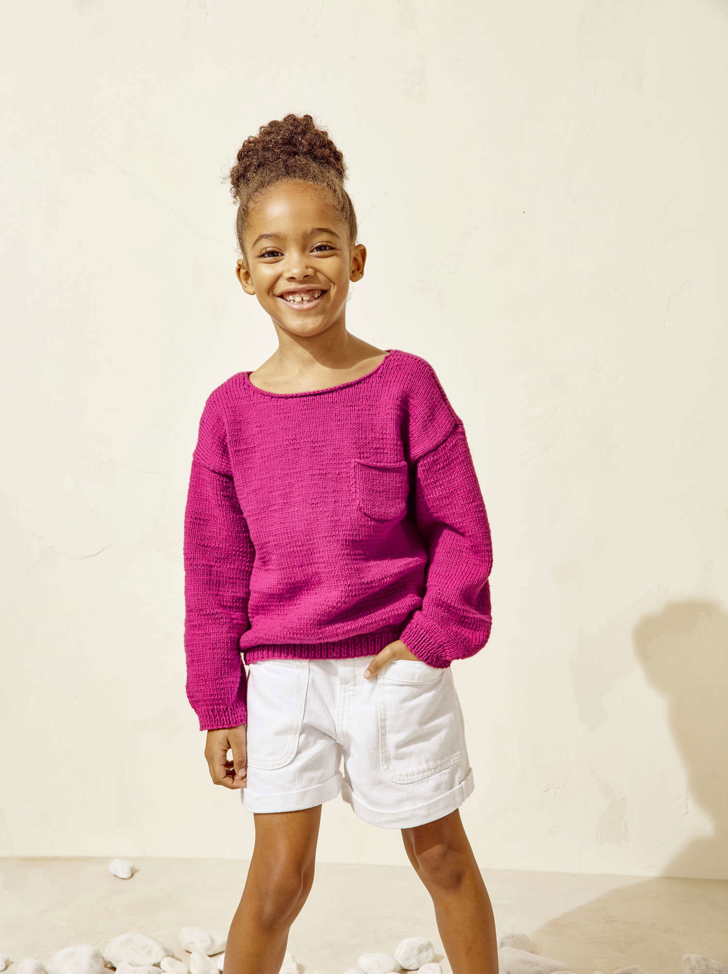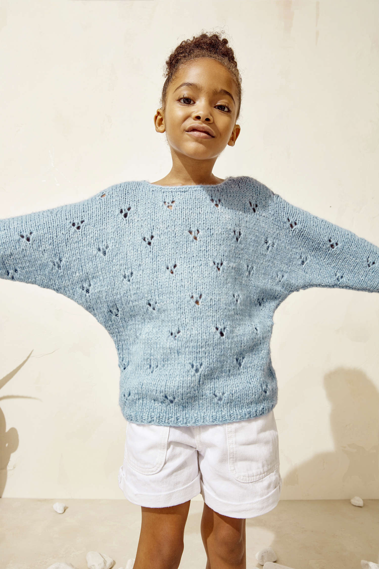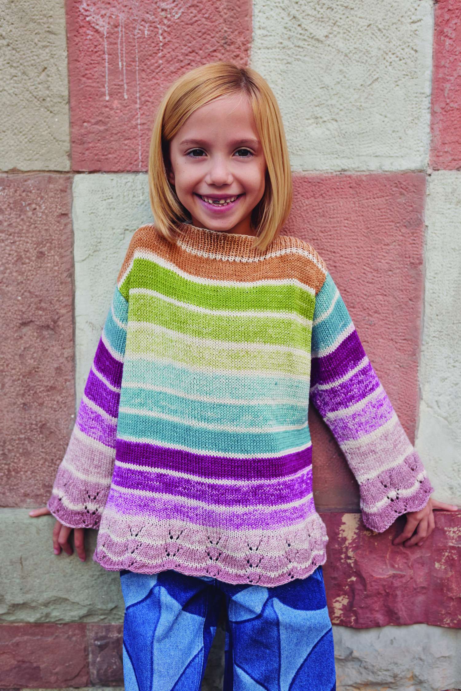 Neben vielen Strickdesigns stellen wir auch einen Häkelpulli vor. Dazu noch praktische Jacken, ein Kleid, pfiffige Einstrickmuster, robuste Zöpfe und vieles mehr für Jungs & Mädchen.