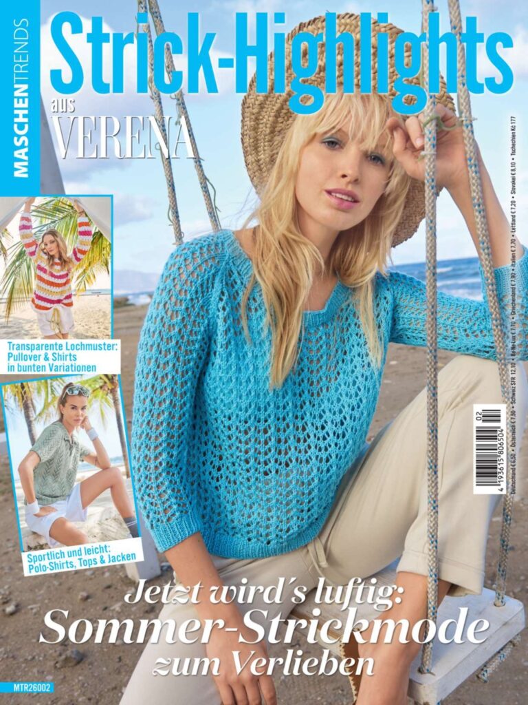 Endlich wieder Sonne! Wir träumen von Sonne, Meer, Strand… und Zeit für uns. Mit den exklusiven, luftigen Designs der VERENA Stricktrends läuten wir die Frühlings- und Sommer-Strick-Saison ein! Mit leichten Garnen auf den Stricknadeln starten wir rein ins Strickvergnügen. Wir zeigen dir hier unsere Lieblings-Strickmodelle, die den Sommer noch schöner, noch luftiger und noch bunter machen. Von Pastell bis kräftig grün ist hier an Farben für jeden Geschmack was Tolles vertreten. Unsere Strickmode-Highlights in trendigem Polo-Style und frischen Mint-Tönen machen eine sportliche Figur. Und wer etwas für schöne, lange Sommerabende sucht, wird mit unseren femininen Strick-Outfits in Rottönen glücklich, die mit jedem Sonnenuntergang um die Wetter strahlen können. Wie immer lautet unser Motto: gut aussehen und dabei wohlfühlen! Das versprechen wir dir mit unseren beliebtesten Strickmode-Designs aus der VERENA Stricktrends.